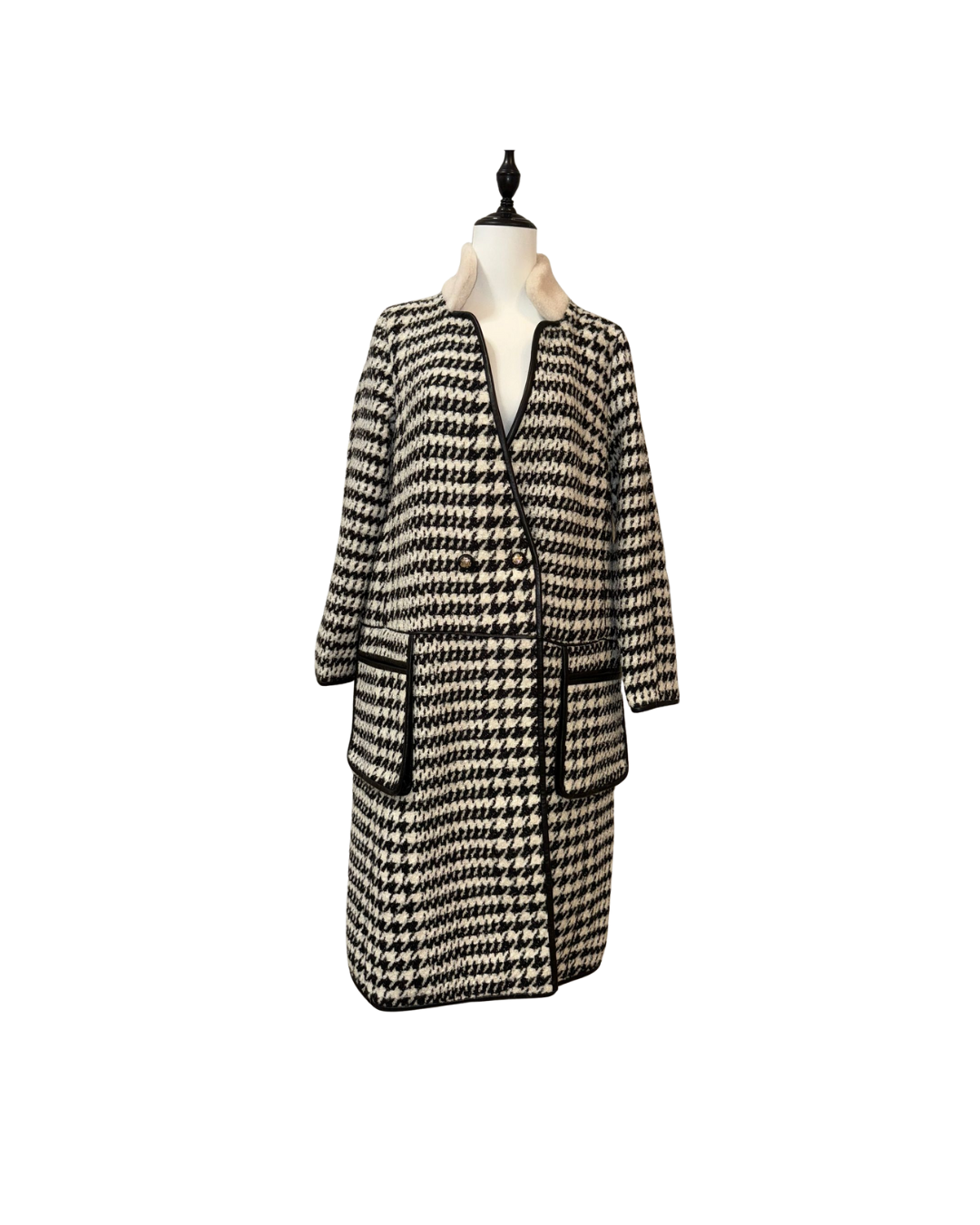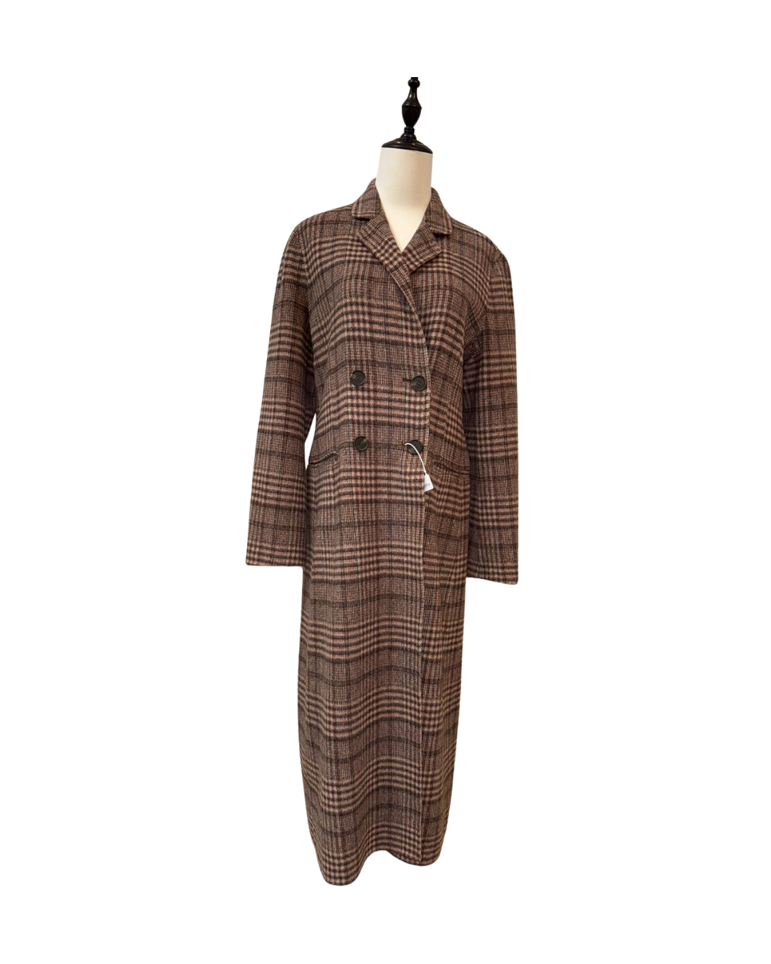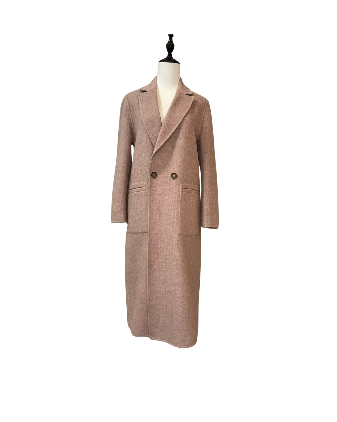兔毛羊毛混紡雙排扣長大衣,溫柔質感顯高級
