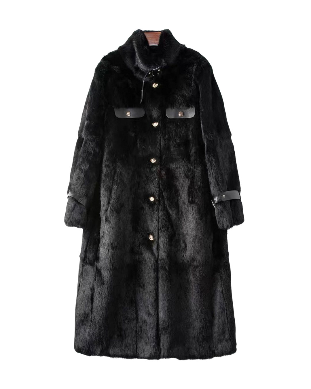 暖橘中長款Lacon系列羊毛皮毛一體外套