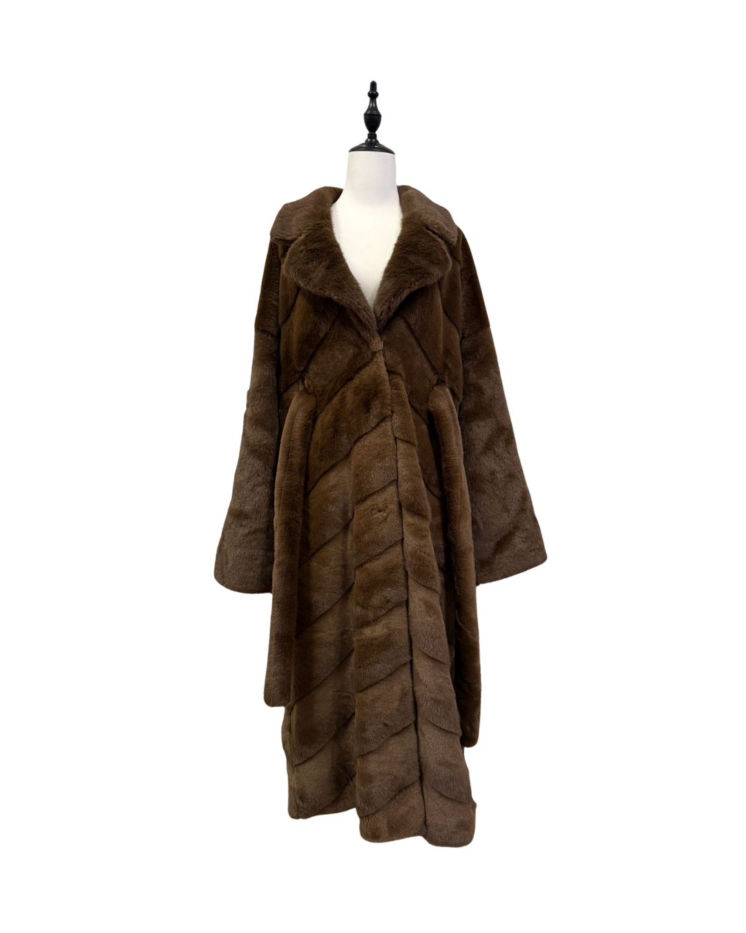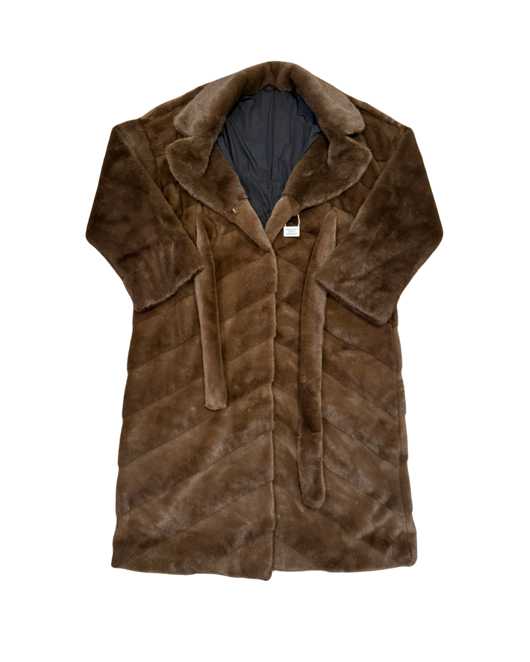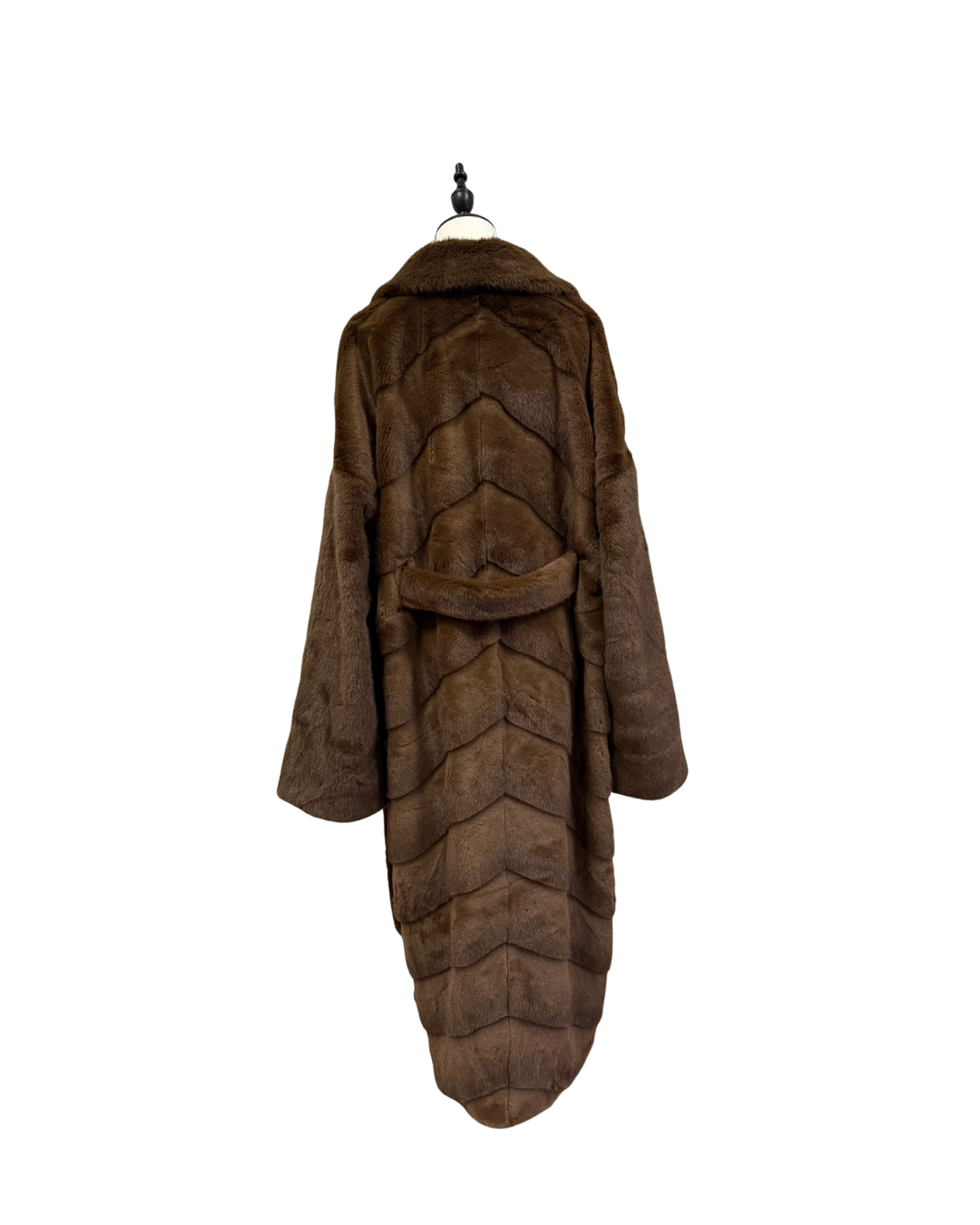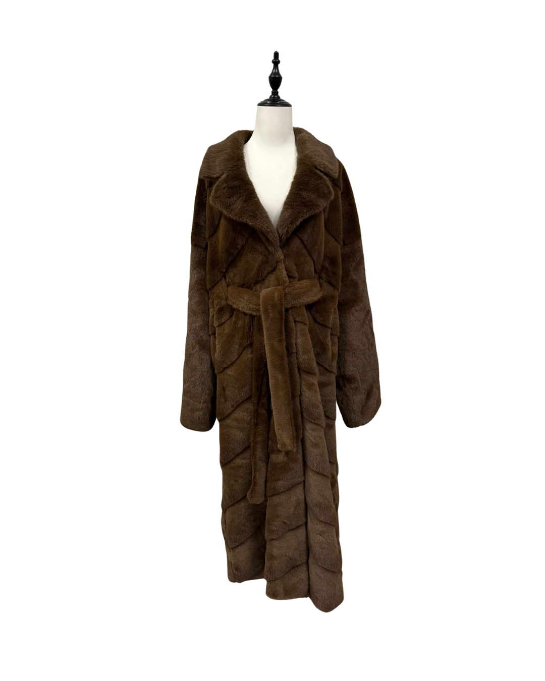秋冬必備:這款優雅的人造毛皮長大衣!採用柔軟的人造毛皮製成,無需使用真動物皮毛,就能帶來蓬鬆溫暖的觸感。濃郁的棕色和獨特的花紋設計使其外觀奢華時尚,非常適合打造時尚造型。長款設計增添了優雅氣質,可選的腰帶能讓你收緊腰部,打造更修身的造型。