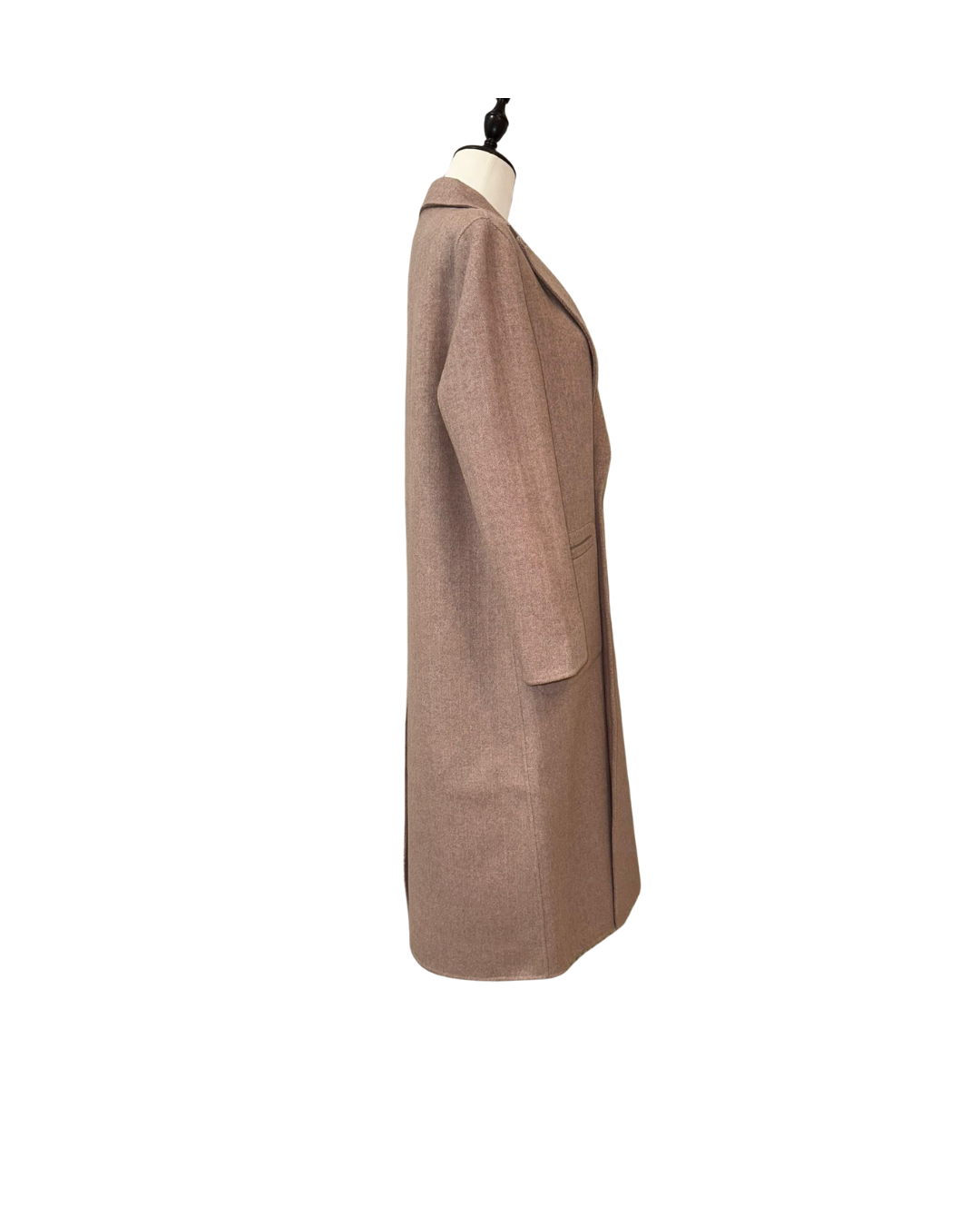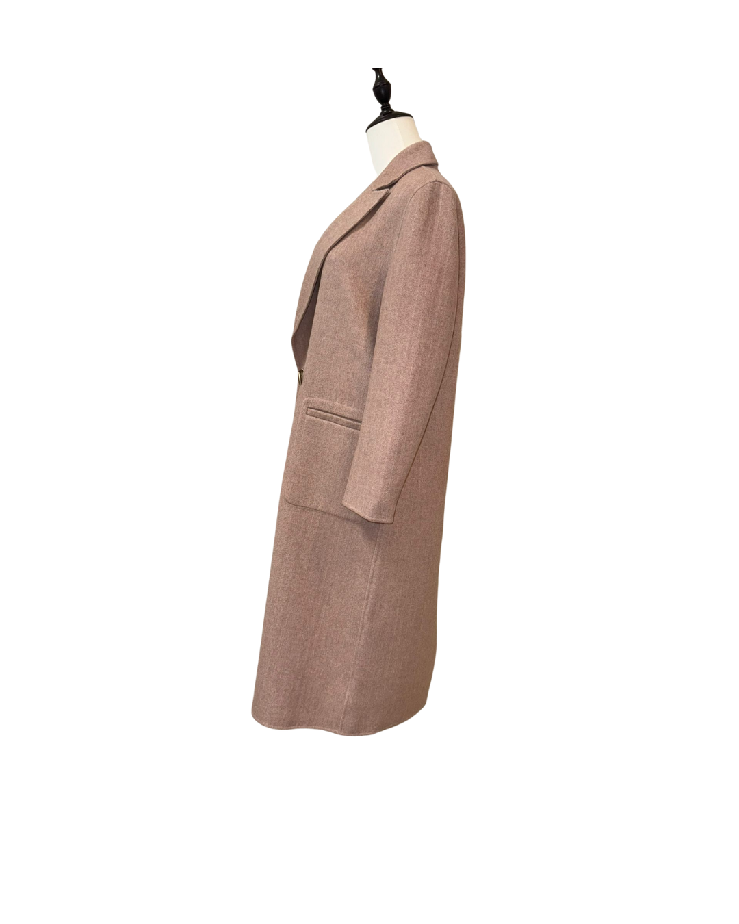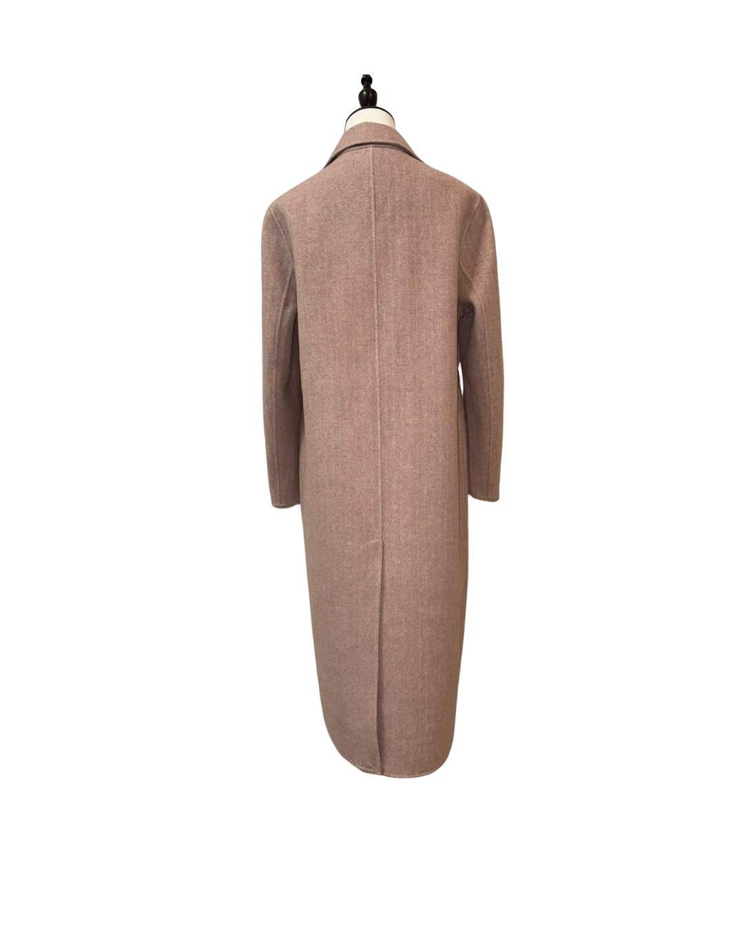 秋冬必備:這款優雅的羊毛兔毛大衣!採用羊毛與兔毛混紡,保暖性極佳,且質地柔軟蓬鬆。淺粉色調賦予它溫柔的女性氣質,而經典的雙排扣設計和長款造型散發出永恆的精緻感。