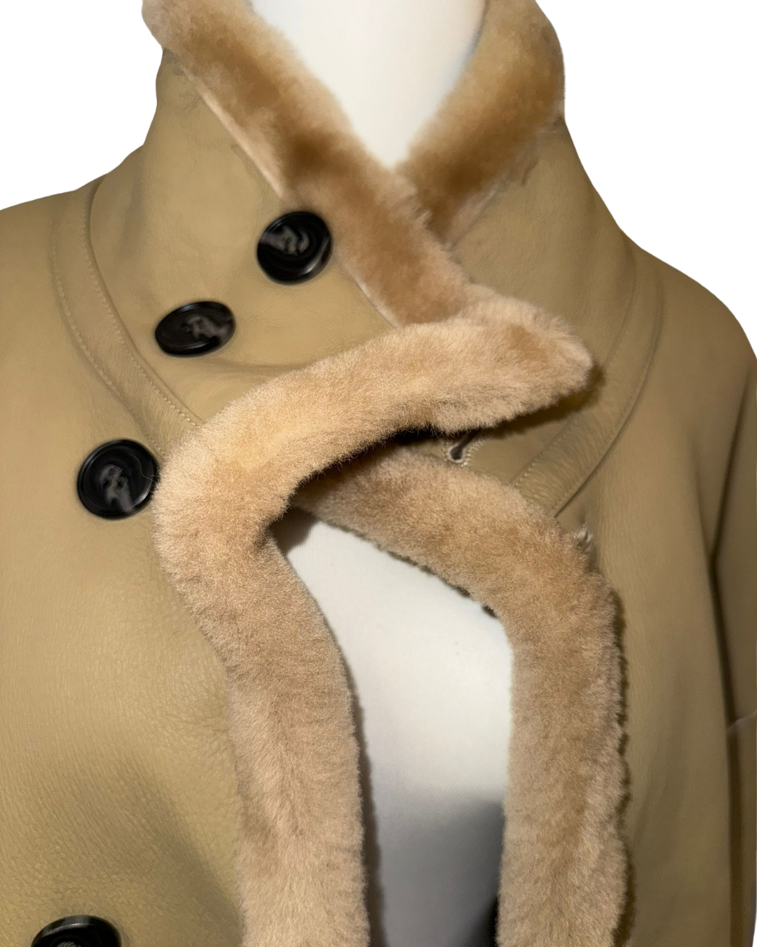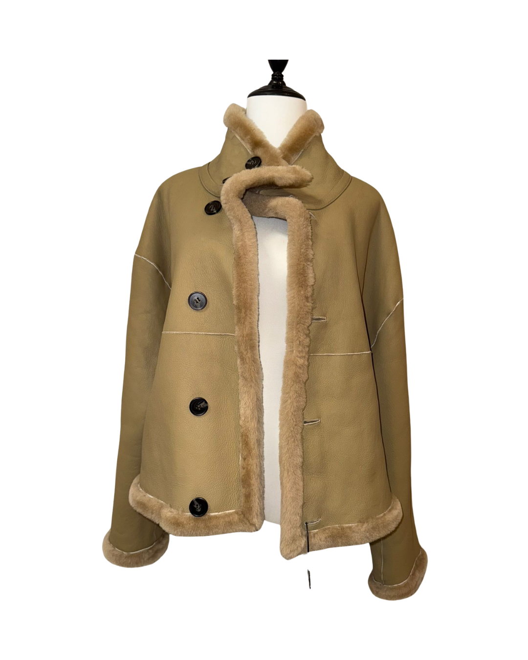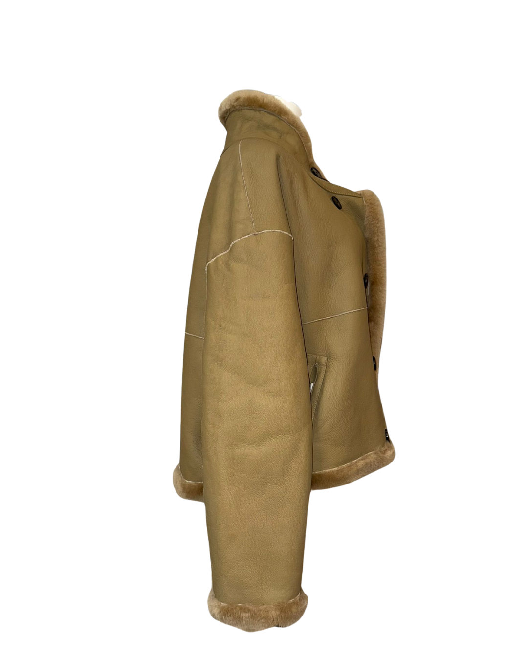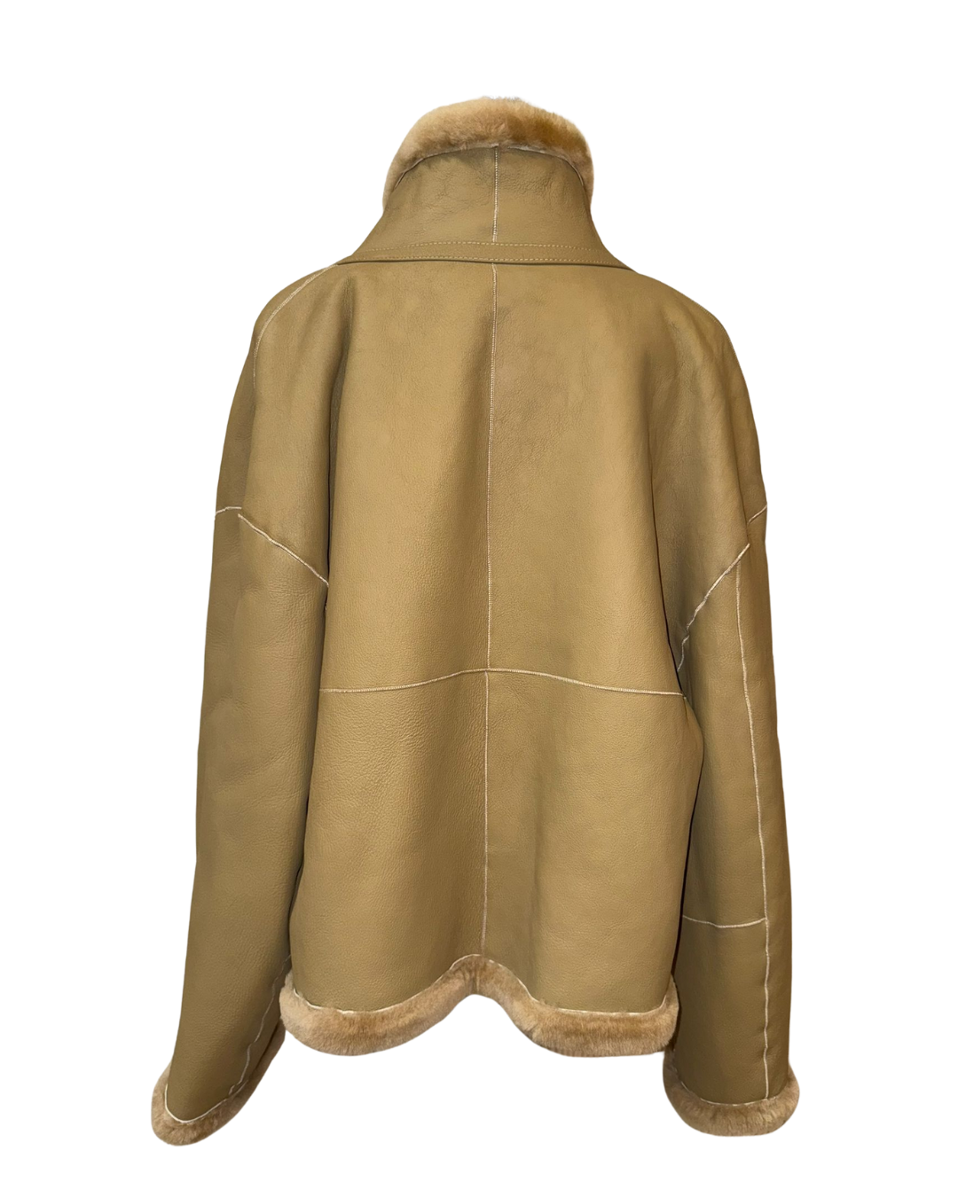 這是一件奢華的全羊皮羊毛皮毛一體雙面穿外套。它的胸圍為 102cm,長度 57cm,肩寬 43cm,袖長 62cm,重量 1.1 公斤。整體設計精緻高級,雙面穿的特性賦予其更多穿搭可能性,無論是想展現皮質的利落感,還是羊毛皮毛的溫暖質感,都能輕鬆實現,是提升穿搭檔次的優質選擇。