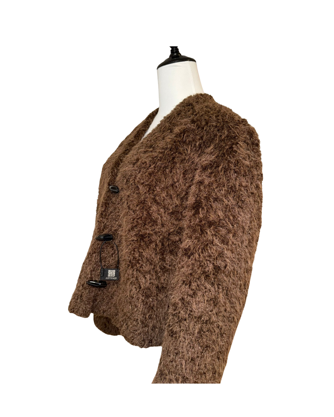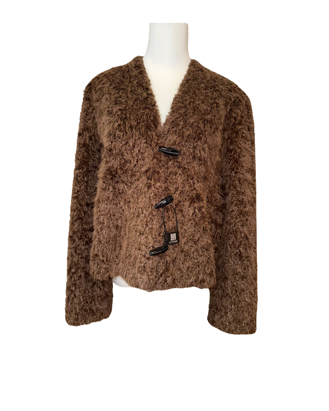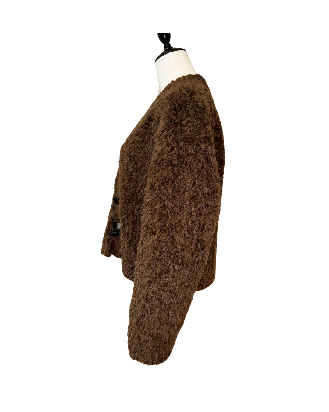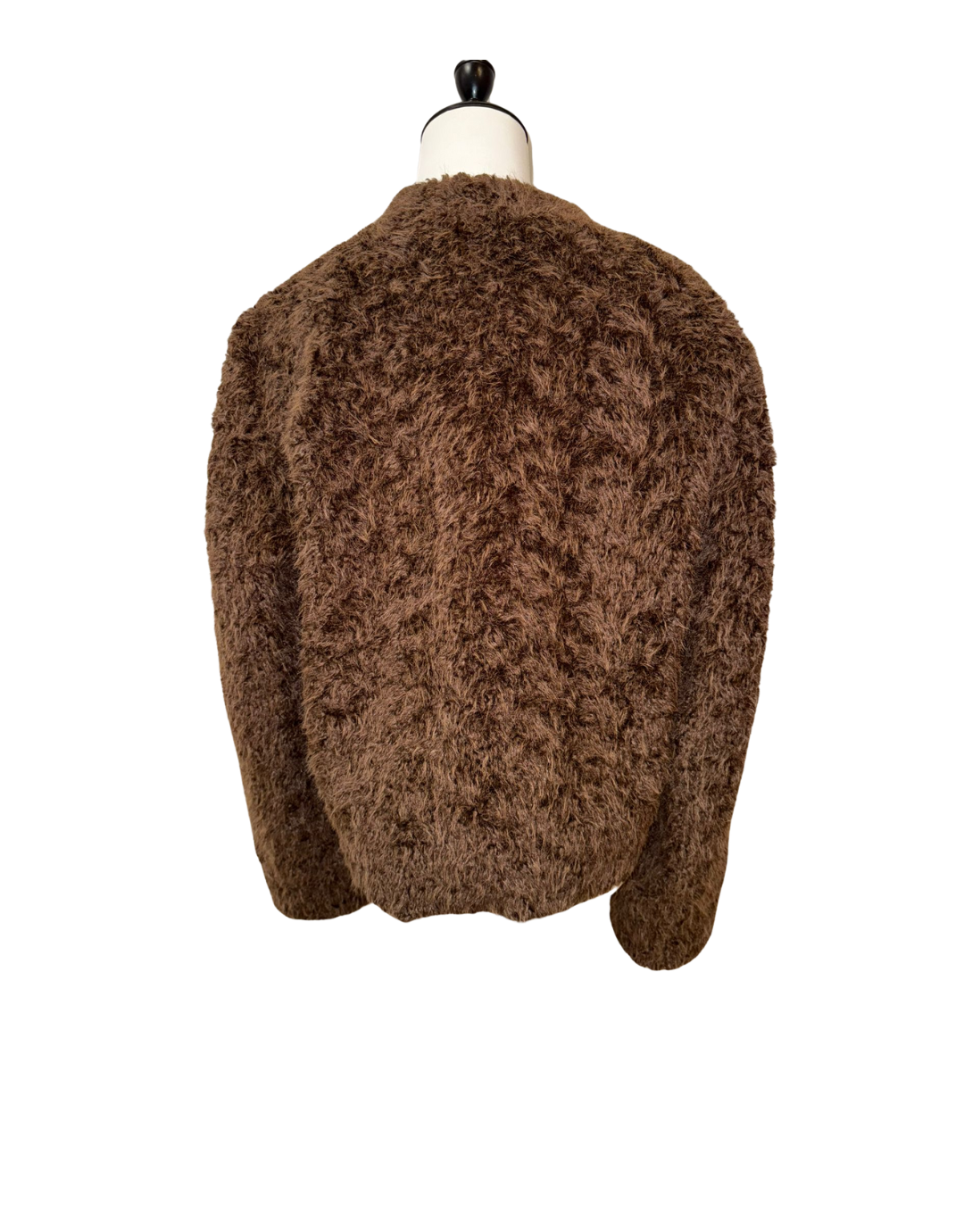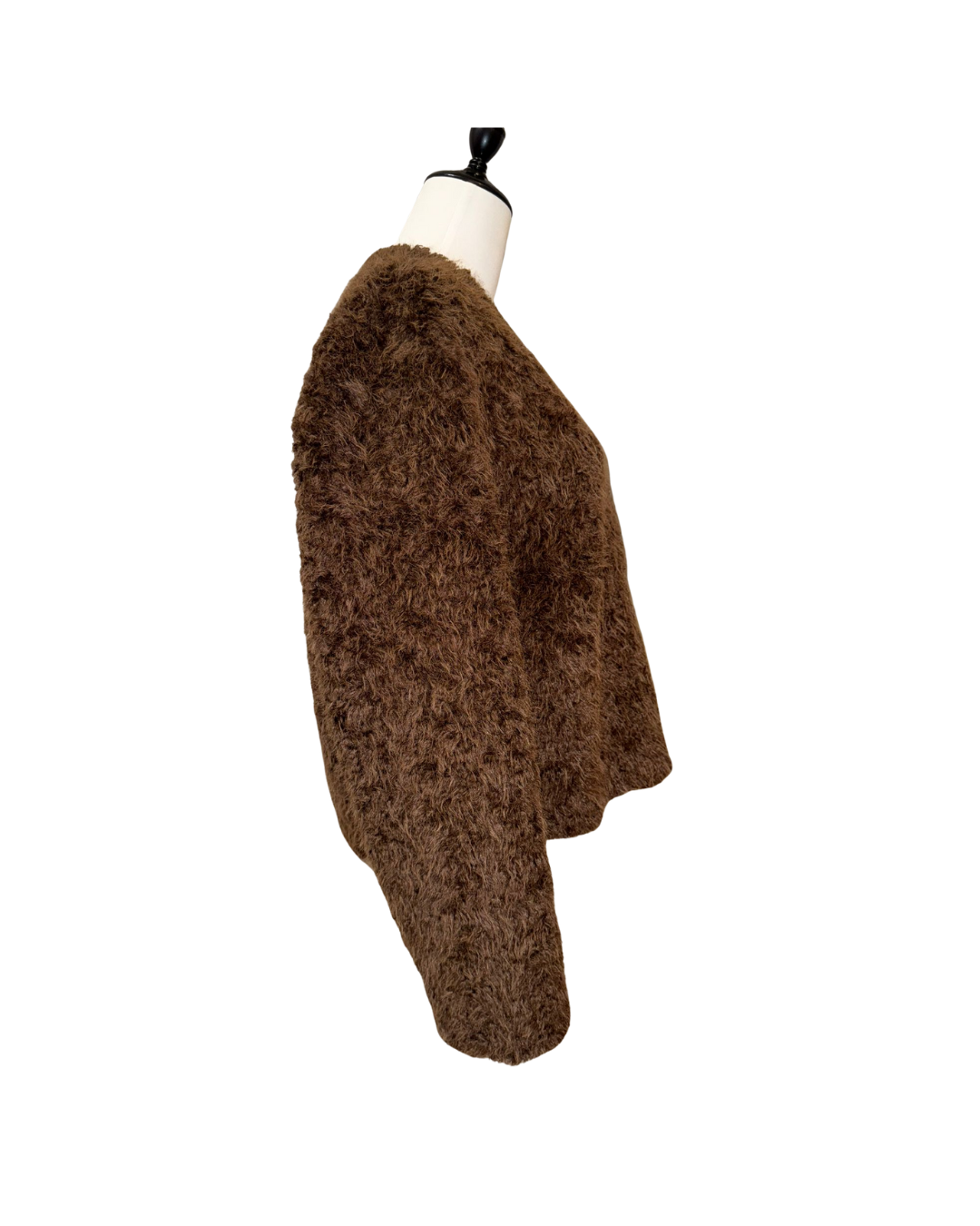 秋冬必備「人造毛皮外套」!選用柔軟的人造毛皮製成,無需使用真動物皮毛,就能帶來蓬鬆溫暖的觸感。V 領設計賦予它時尚現代的外觀,獨特的套索鈕扣則增添了幾分俏皮的精緻感。短款剪裁很是潮流,與高腰單品搭配相得益彰,讓你時尚又溫暖。