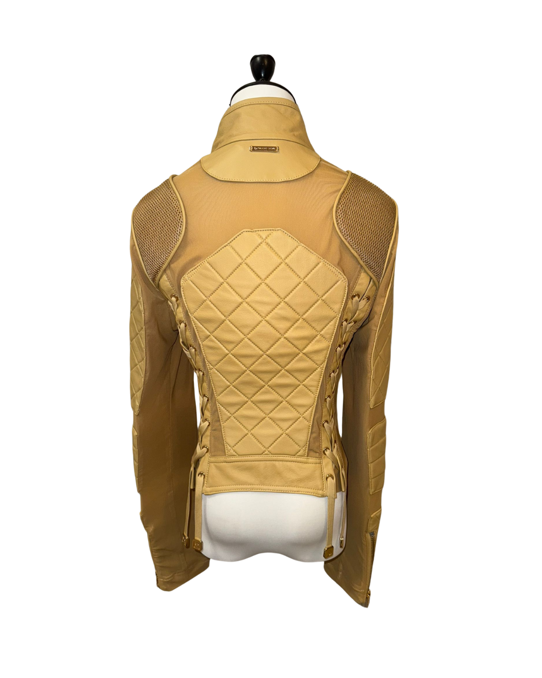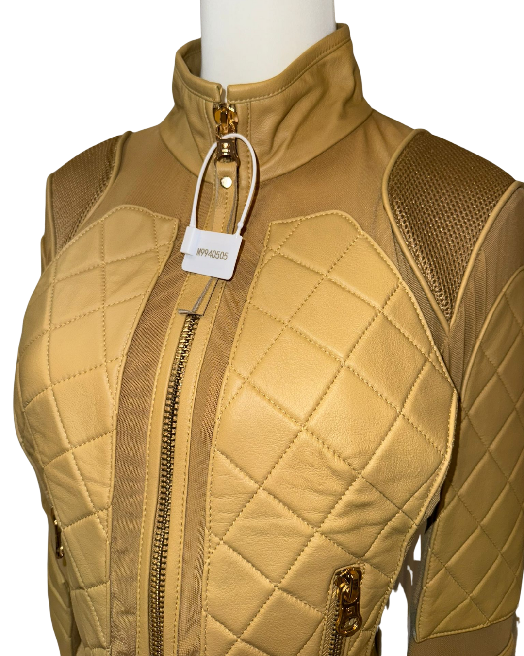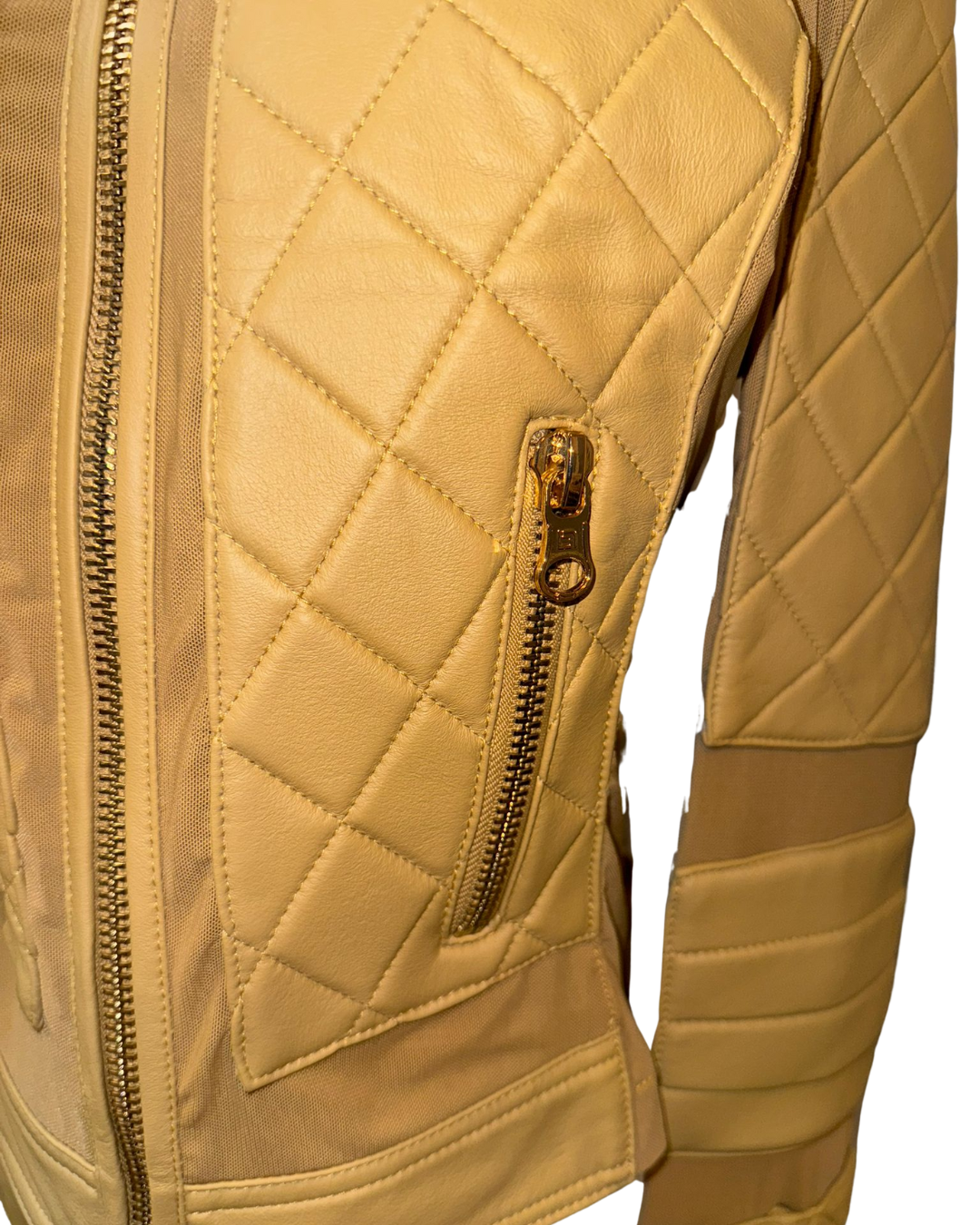 秋冬必備「格紋皮革夾克」!選用高級皮革製成,格紋縫線設計增添奢華感,外觀挺括有型。修身剪裁能凸顯身形曲線,立領與金色拉鍊則為整體注入個性元素。無論內搭 T 恤或毛衣,都能讓你時尚又保暖。