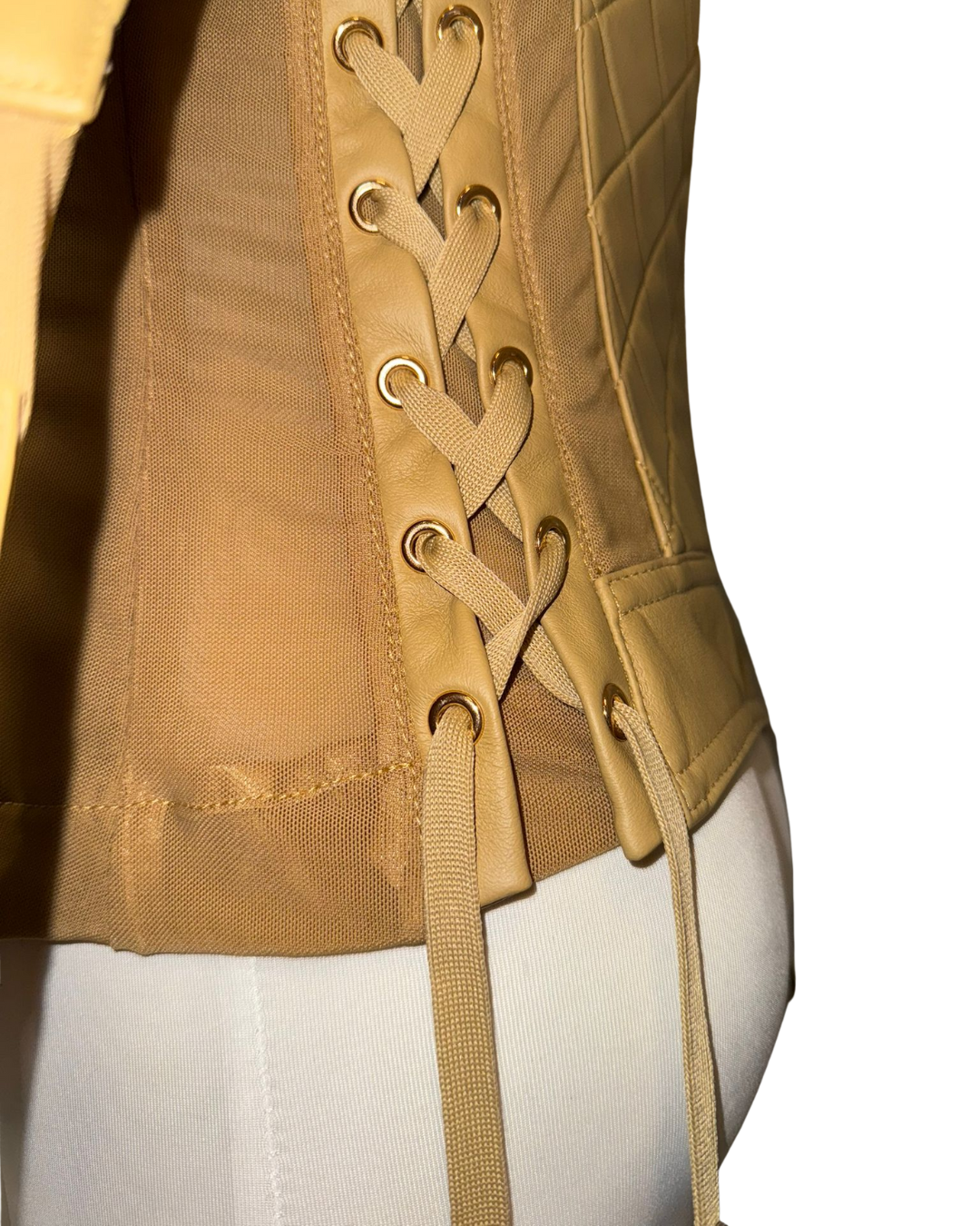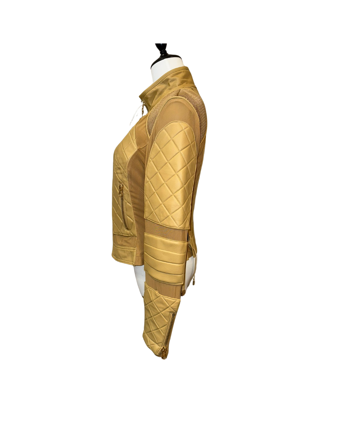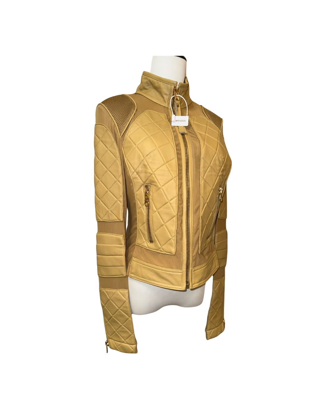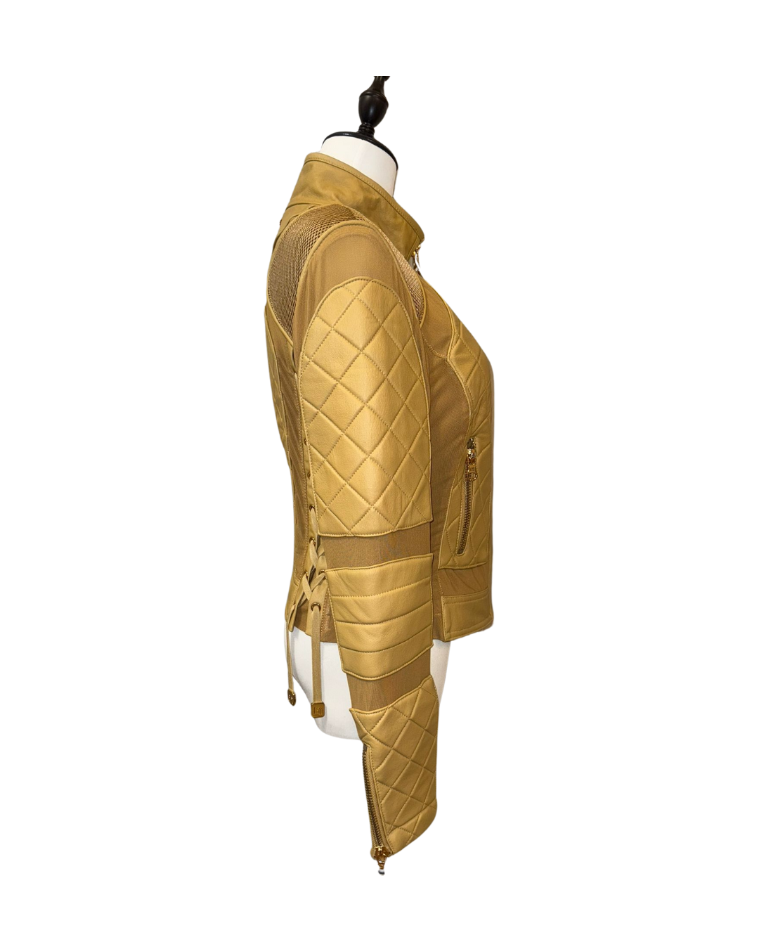 秋冬必備「格紋皮革夾克」!選用高級皮革製成,格紋縫線設計增添奢華感,外觀挺括有型。修身剪裁能凸顯身形曲線,立領與金色拉鍊則為整體注入個性元素。無論內搭 T 恤或毛衣,都能讓你時尚又保暖。