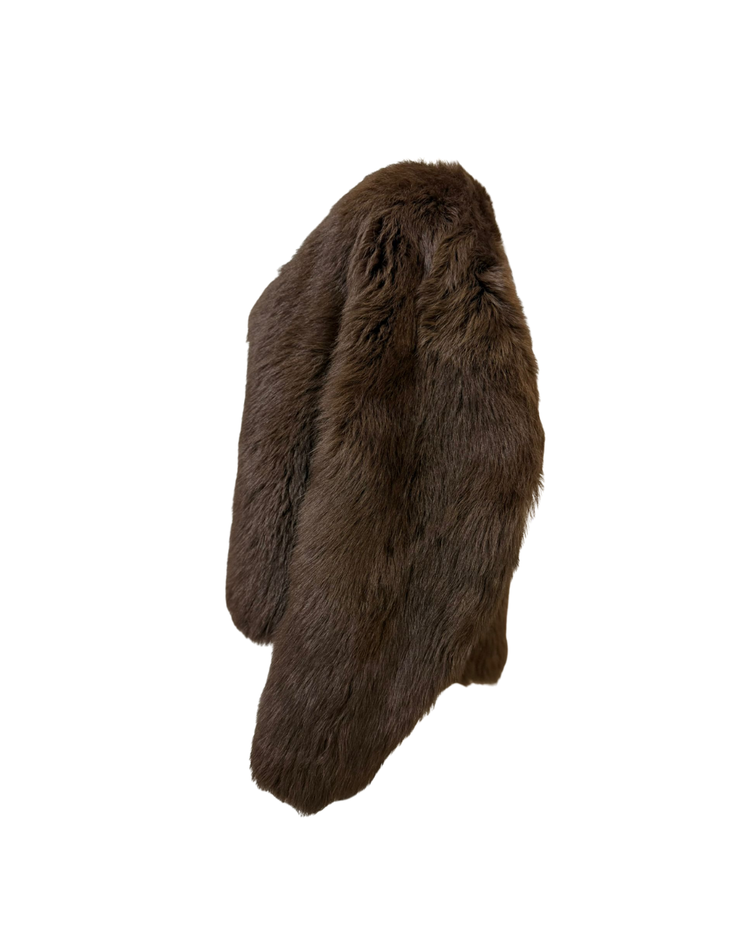 深棕托斯卡納羊毛皮毛一體,質感厚實保暖,時尚高級