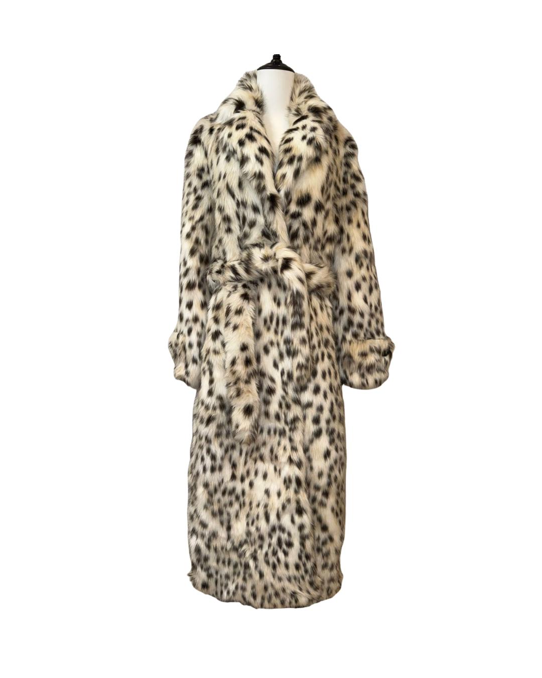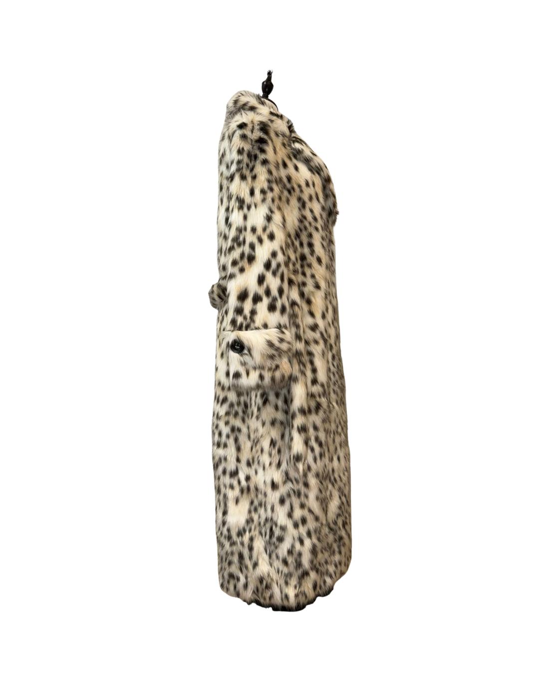秋冬必備:這件魅力十足的雪豹紋人造皮草大衣!採用高級人造皮草製成,質感蓬鬆舒適,散發滿滿奢華氣息。時尚翻領與長版剪裁,搭配可選腰帶,打造出時髦又多變的風格。加上側邊口袋,不僅提升實用性,更增添一抹潮流魅力。