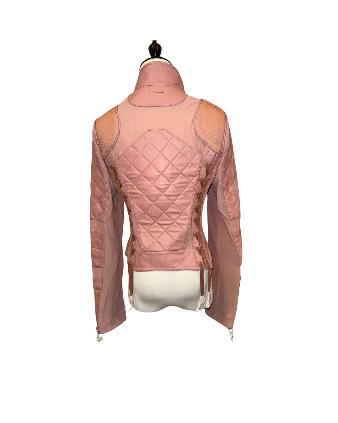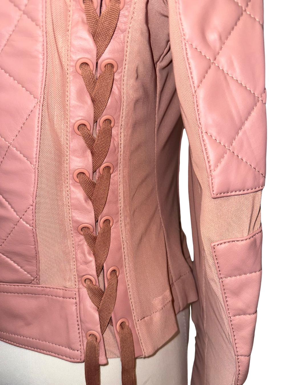 粉紅真皮彈力外套修身顯瘦時尚單品