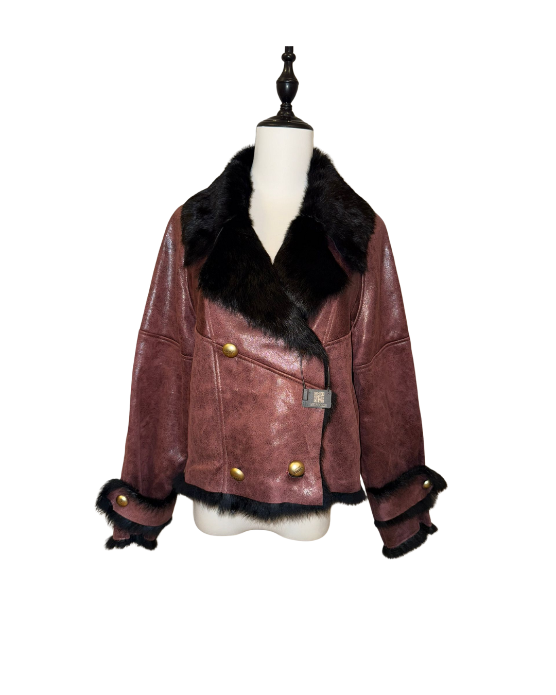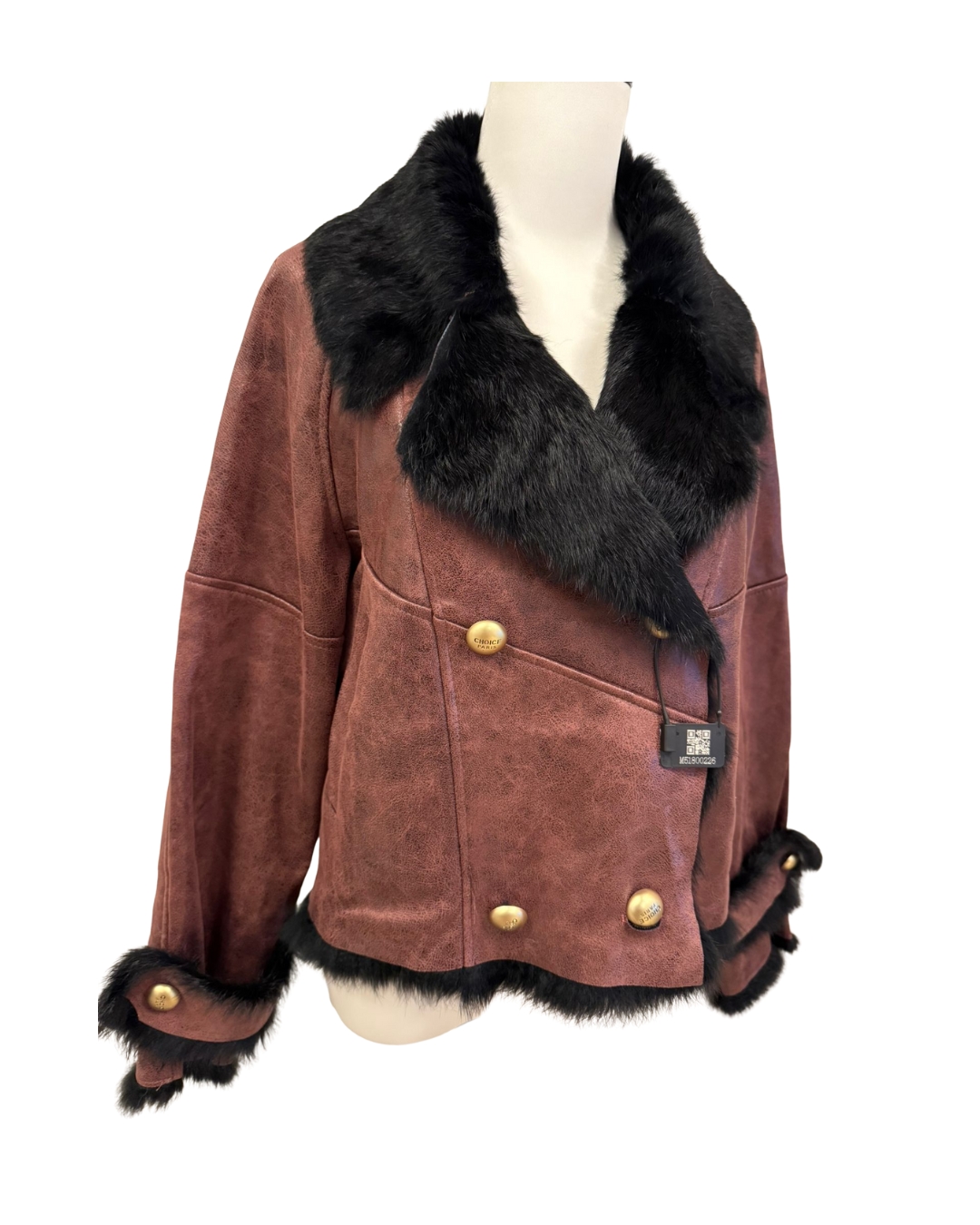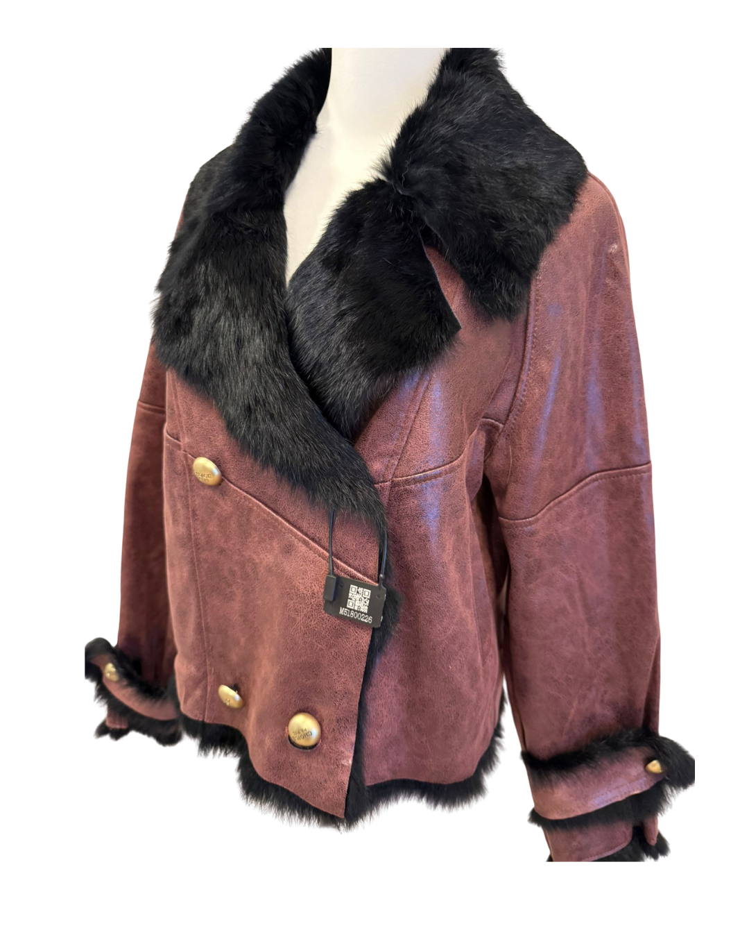 秋冬必備「紅色兔剪絨外套」!選用高級兔剪絨製成,表面帶有光澤與獨特質感,滿滿奢華感。大膽的黑色毛皮領口和袖口超吸睛,金色鈕扣更添優雅。修身剪裁能凸顯身形曲線,讓你保暖又時髦。