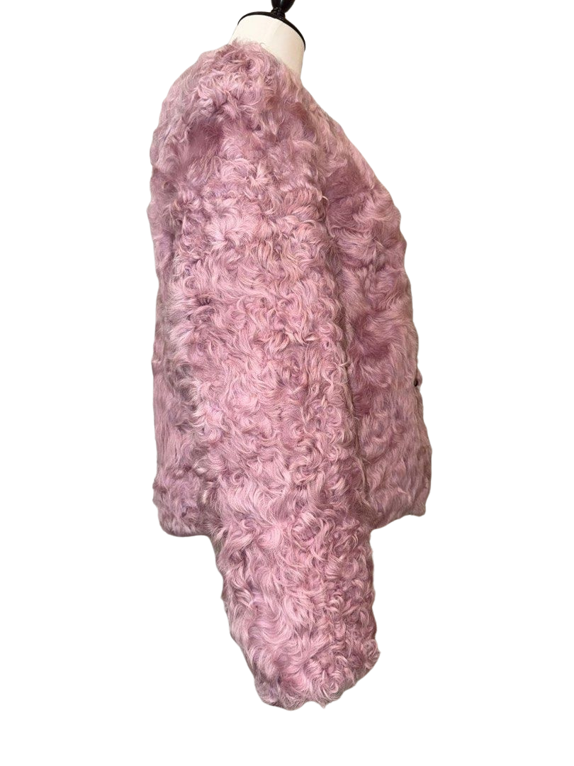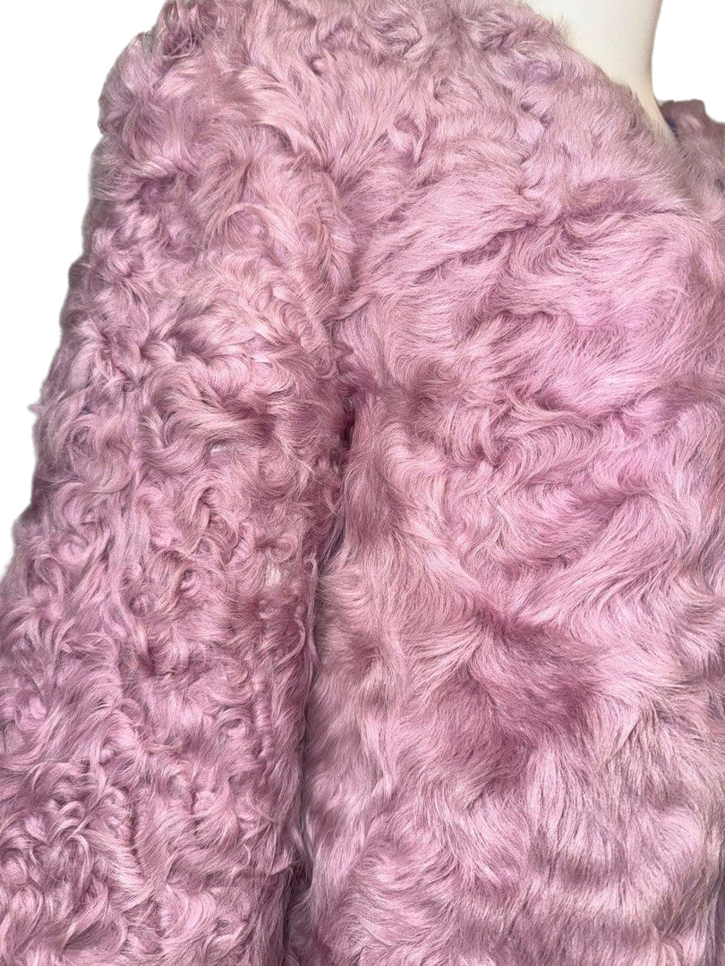 這款粉色皮草小外套,採用小胡純羊毛匠心打造,夢幻的粉色調浪漫吸睛。其毛髮蓬鬆捲曲,質感柔軟細膩,親膚性極佳。V領設計簡約大氣,短款版型利落時尚,既能修飾身型又充滿時髦感。內裏搭配菱格紋棉襯,進一步提升保暖性能,讓你在秋冬季節既能擁有高級穿搭風格,又能時刻感受溫暖包裹,是兼具時尚與實用性的稀缺皮草單品