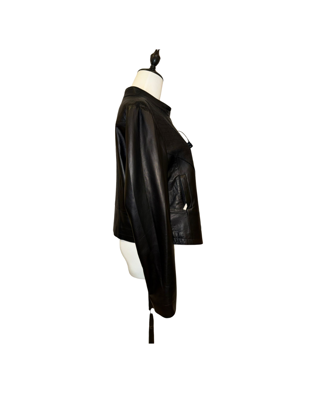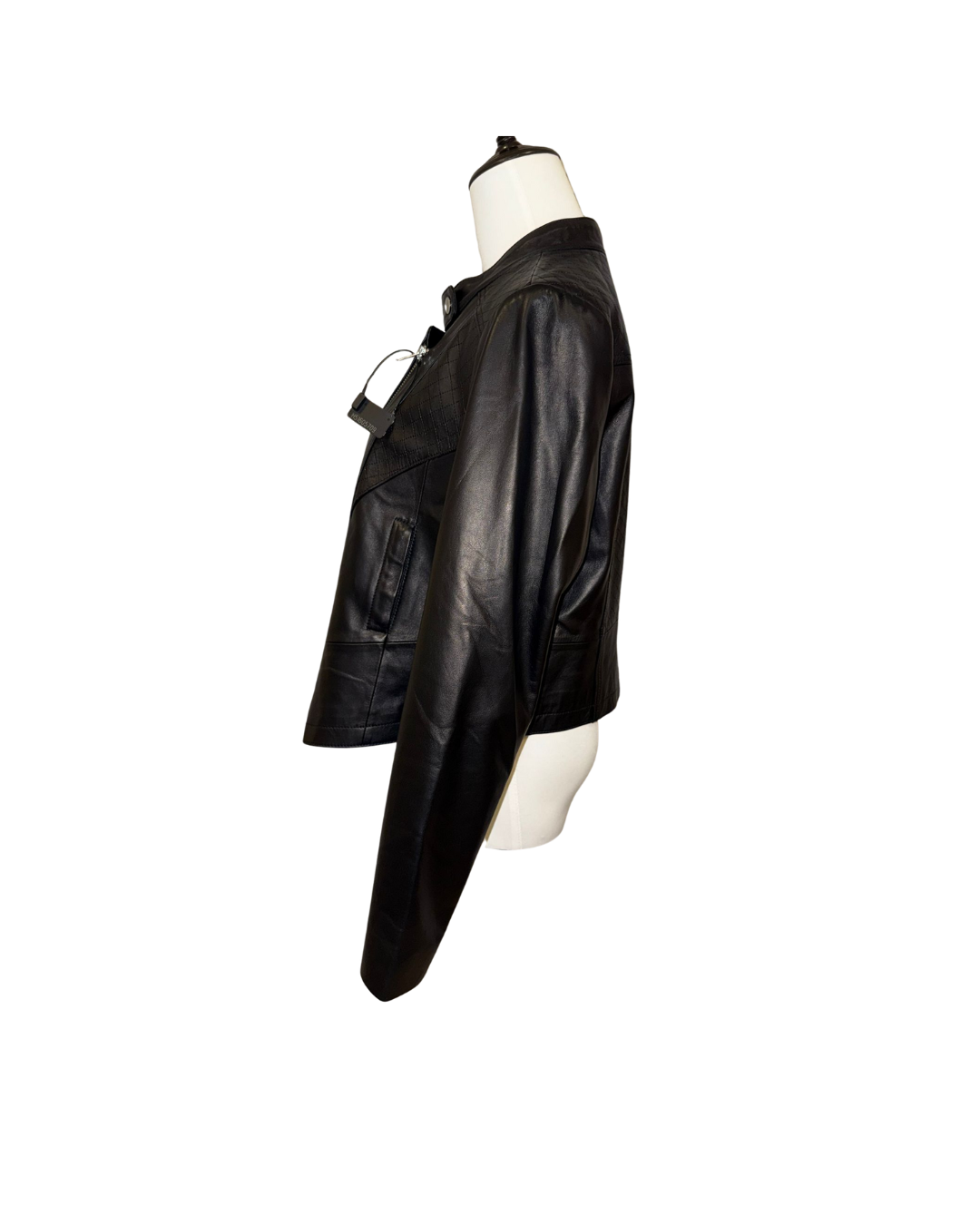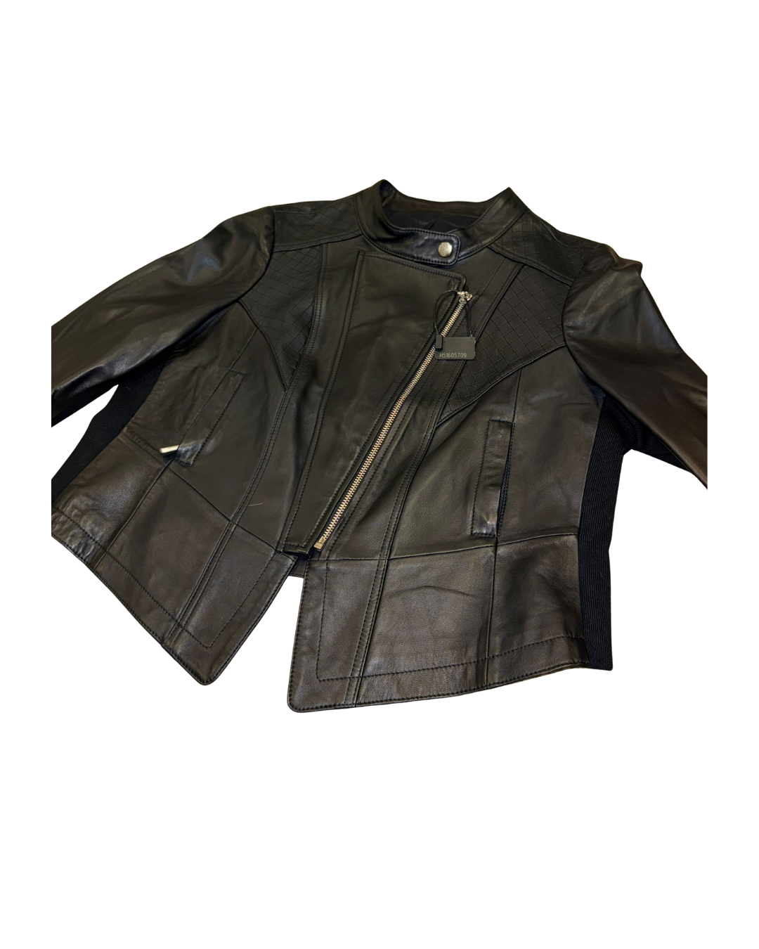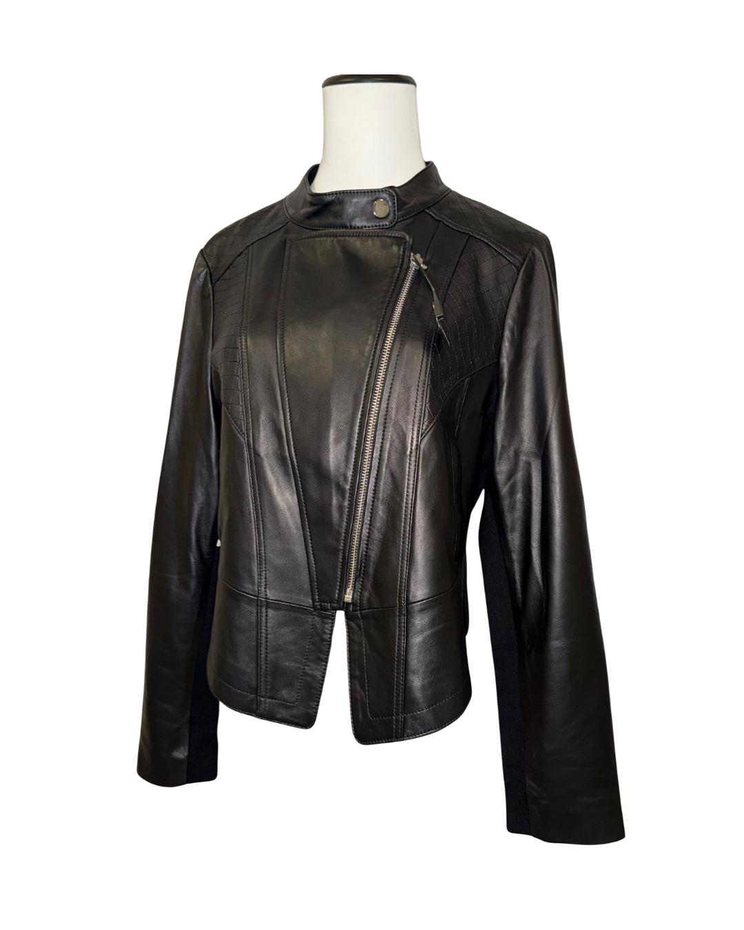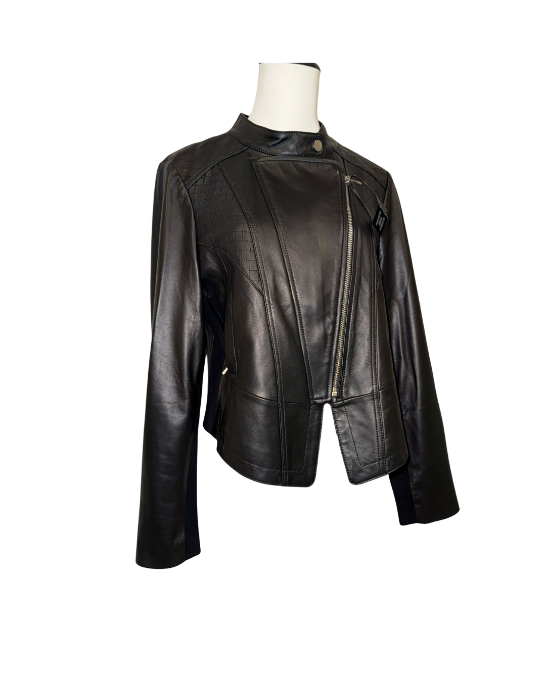秋冬必備:這款時尚的綿羊皮夾克!採用高品質綿羊皮製成,質地光滑奢華。不對稱拉鍊設計增添了一絲前衛與獨特性,使其成為衣櫥中的亮眼單品。修身剪裁能修飾身形,呈現出時尚流暢的外觀。
