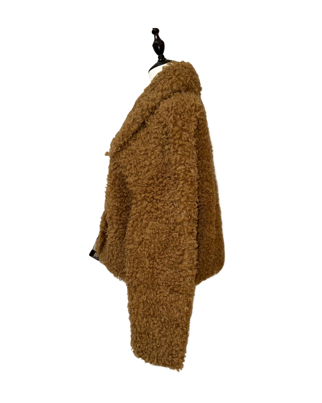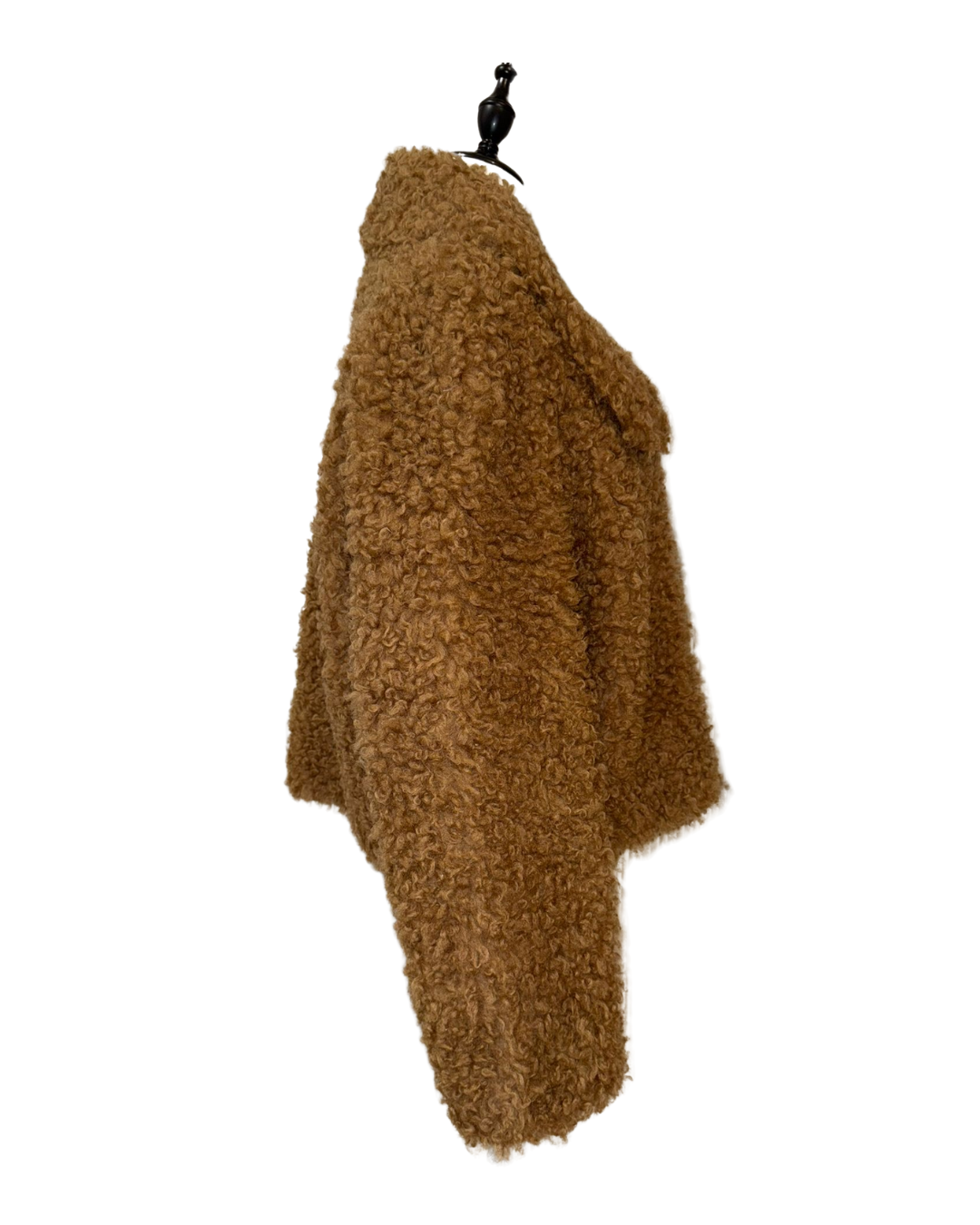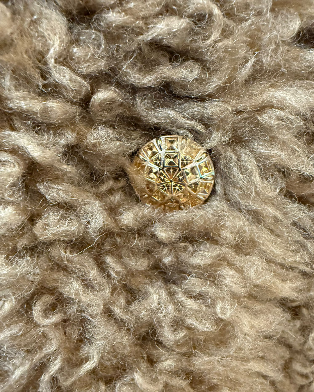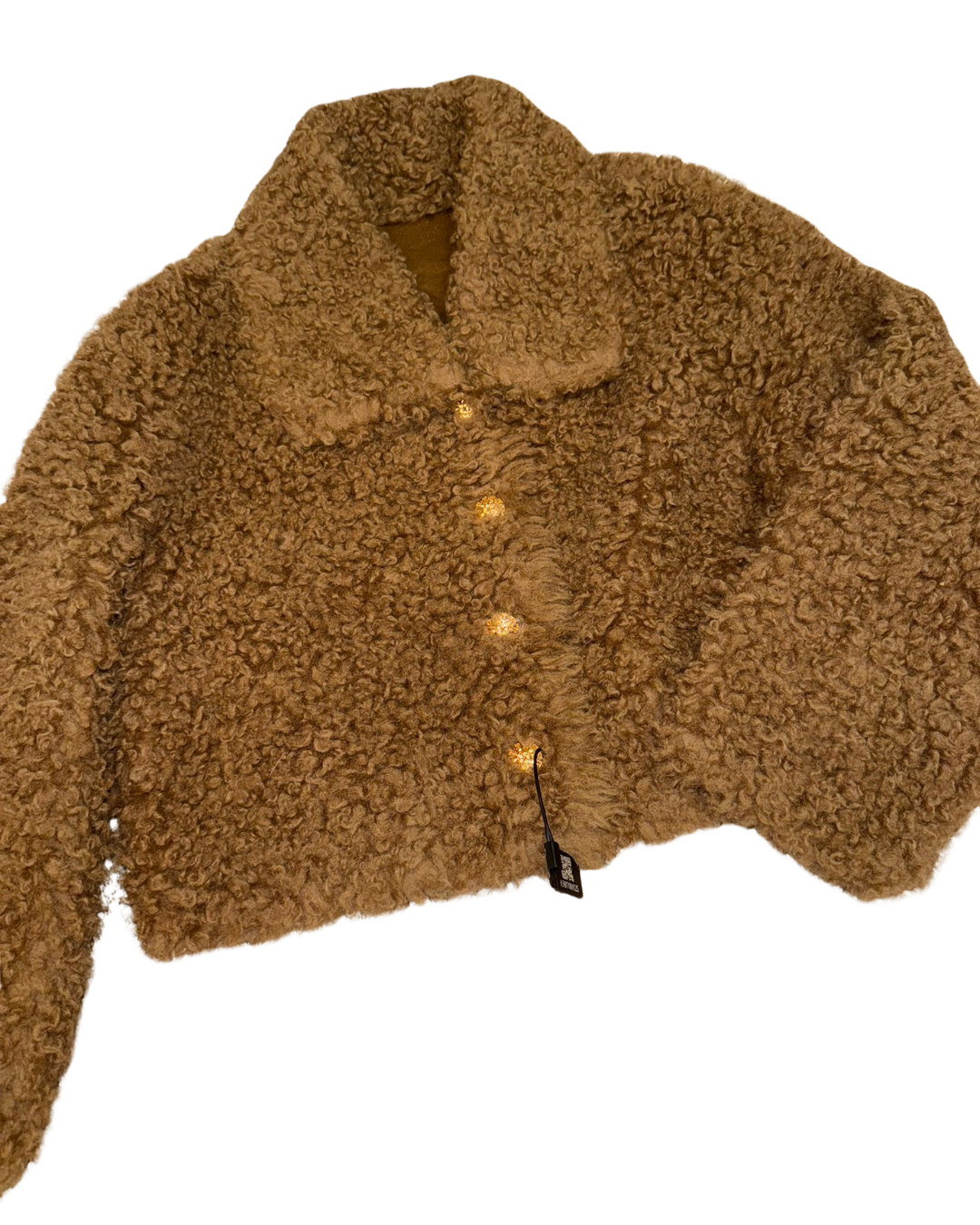 這款外套採用 100% 羊毛與麂皮製成,質感絕佳。胸圍 100cm、長度 54cm、肩寬 43cm、袖長 60cm,重量僅 0.8kg,穿著舒適又輕盈。毛茸茸的外觀溫暖可愛,搭配精緻紐扣,時尚感滿分。不管是日常出門逛街,還是參加小型聚會,這件外套都能為你增添魅力,是秋冬衣櫥裡不可或缺的時髦單品~