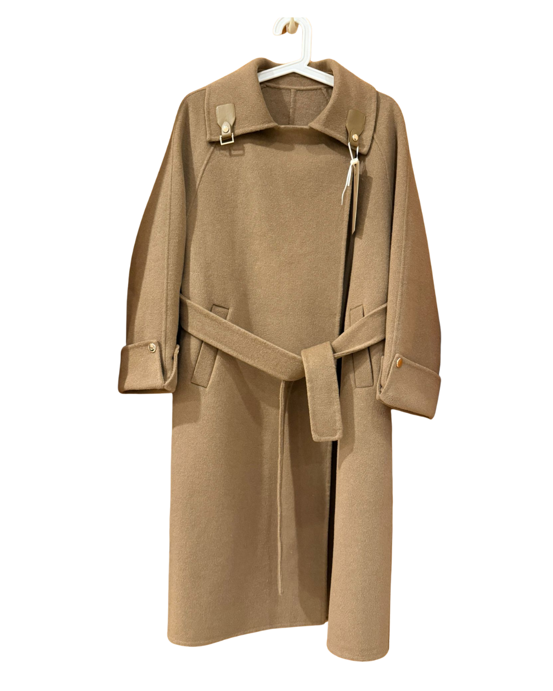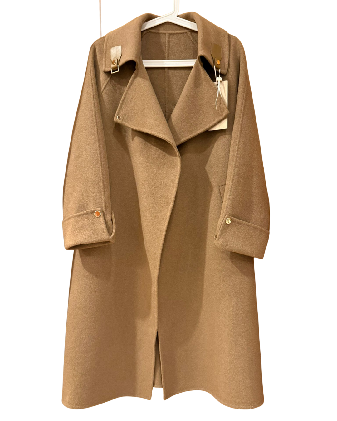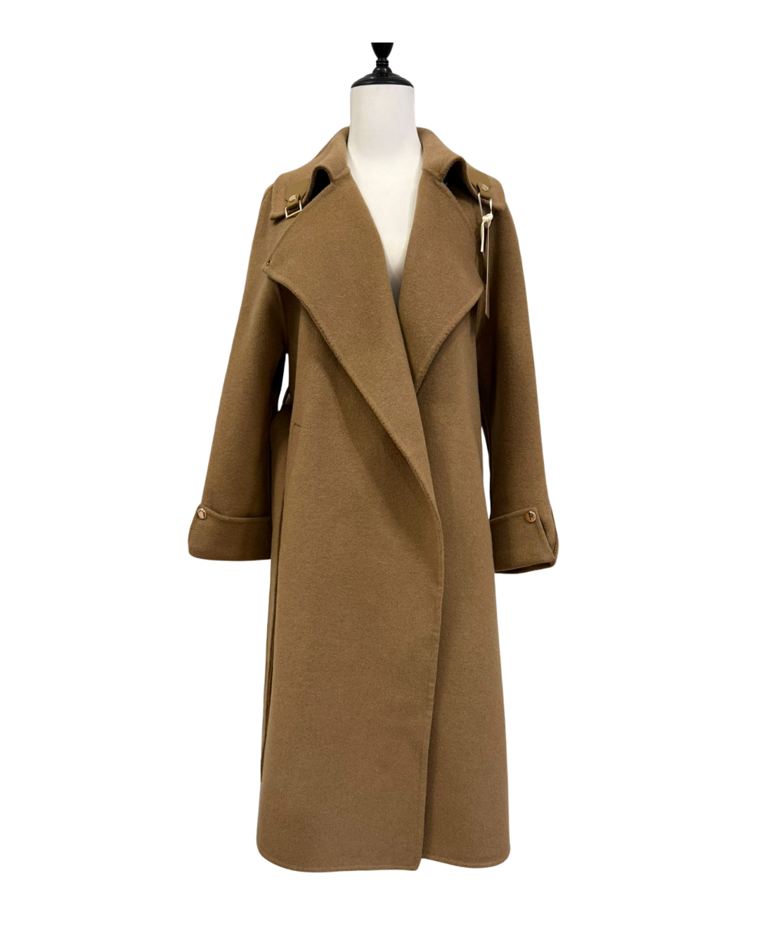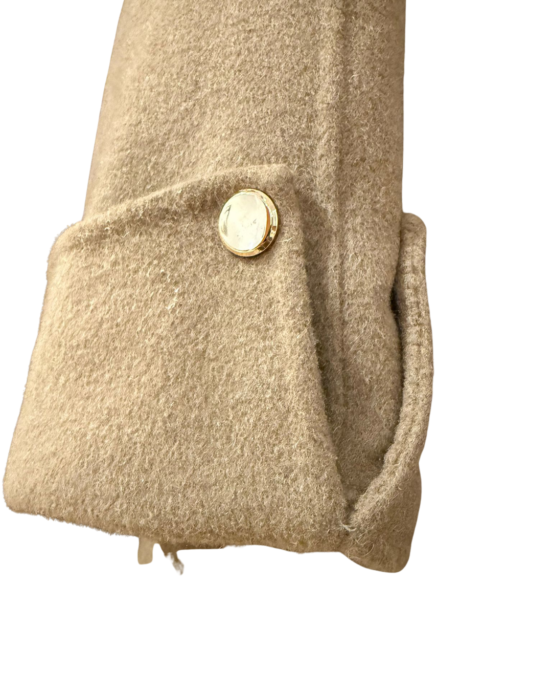 這款純羊毛大衣是冬日必備!採用 100% 羊毛製成,保暖又舒適。駝色經典百搭,永不過時。時尚的領型、精緻的扣飾,搭配能修飾身形的腰帶,兼具優雅與實用性。帶有鈕扣的捲邊袖口,更添幾分精緻感,輕鬆提升冬日穿搭質感!