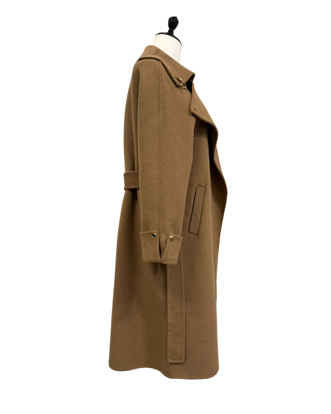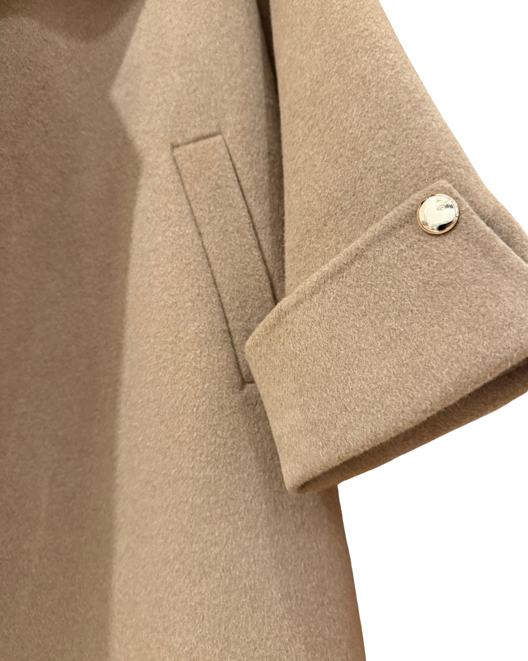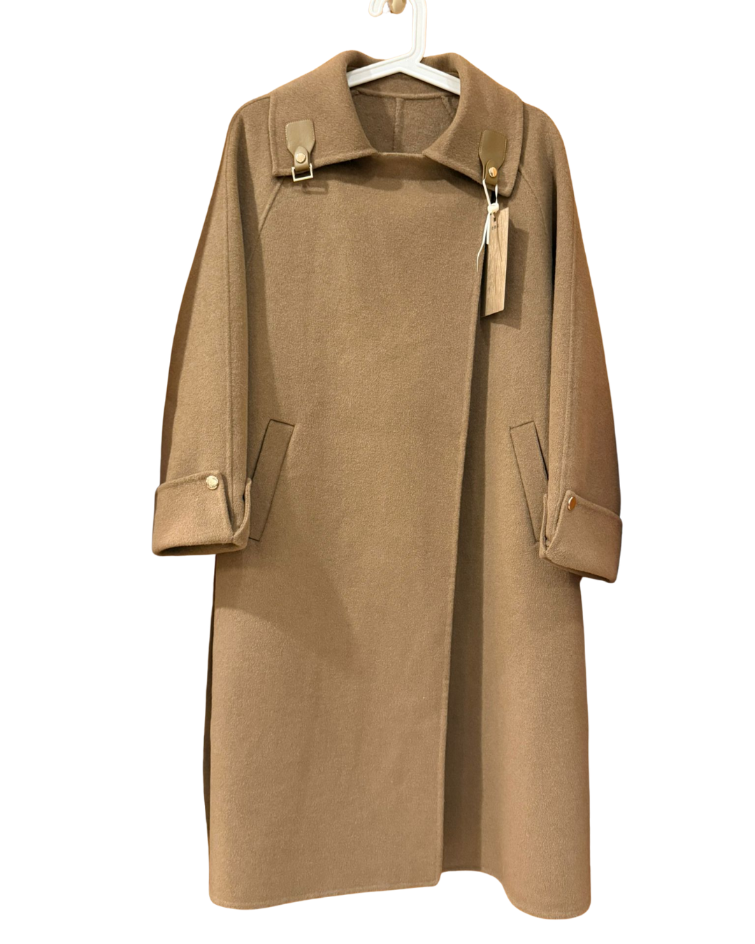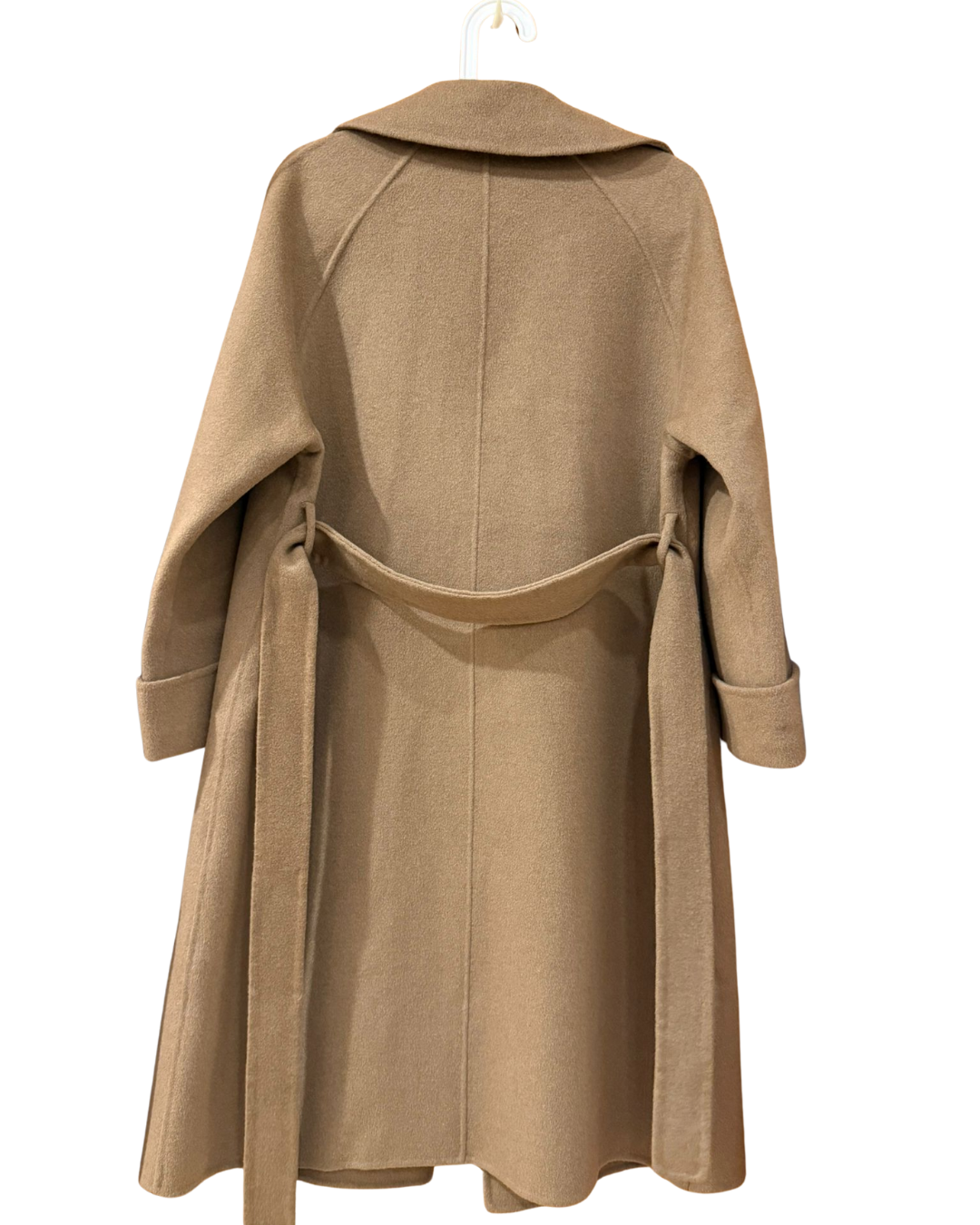 這款純羊毛大衣是冬日必備!採用 100% 羊毛製成,保暖又舒適。駝色經典百搭,永不過時。時尚的領型、精緻的扣飾,搭配能修飾身形的腰帶,兼具優雅與實用性。帶有鈕扣的捲邊袖口,更添幾分精緻感,輕鬆提升冬日穿搭質感!