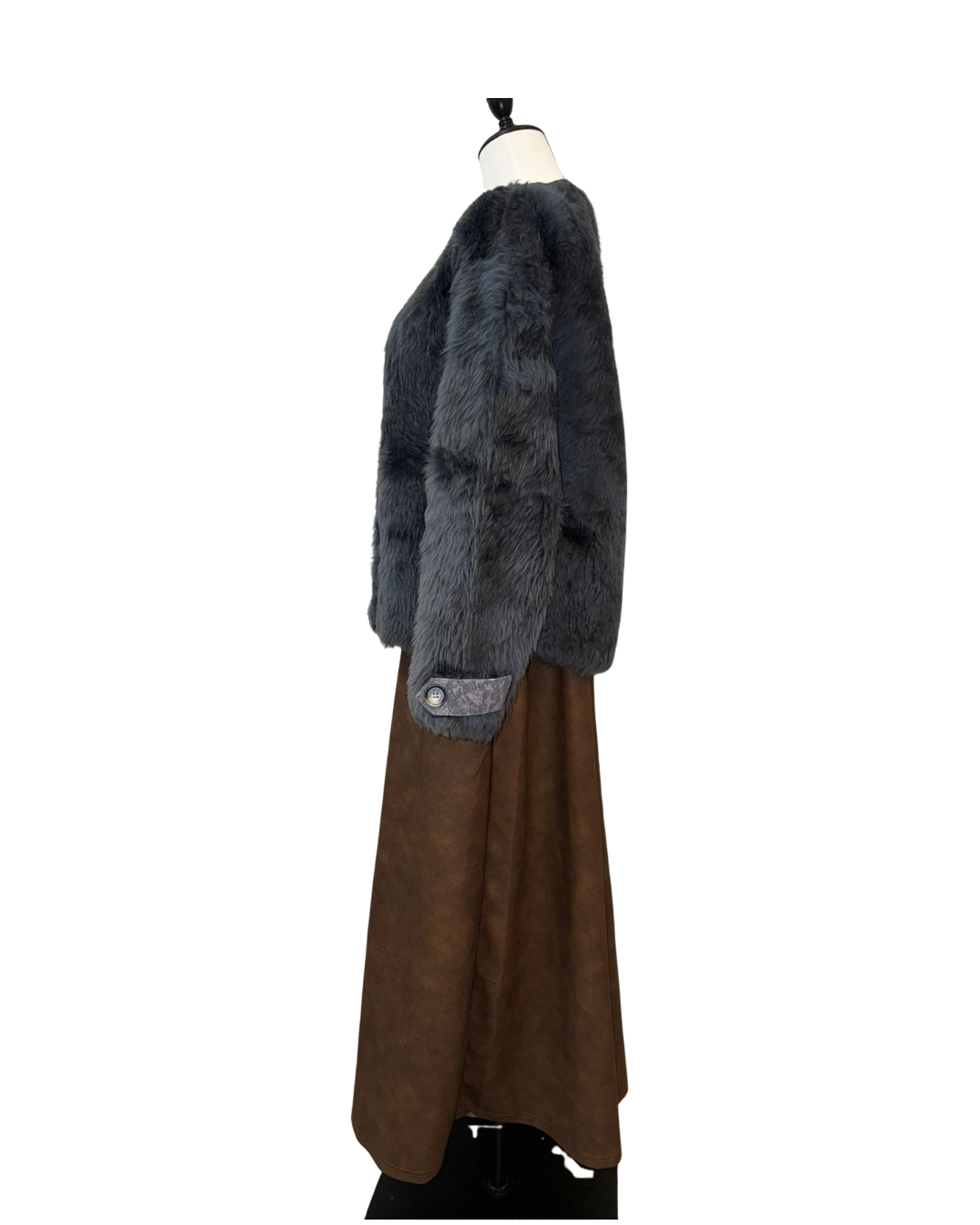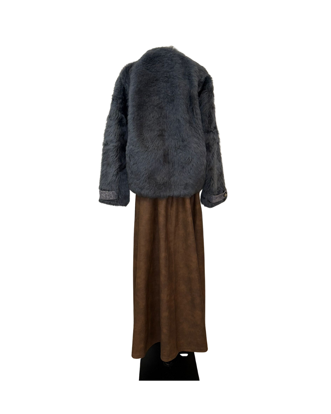 秋冬必備:這款奢華的西班牙進口 Lacon 系列羊毛羊皮皮毛一體外套!採用高品質羊毛和羊皮製成,質地蓬鬆柔軟,保暖性出眾。V 領設計和前襟按扣賦予它經典優雅的外觀,而蓬鬆的羊毛外層散發出高端魅力。寬鬆的剪裁確保舒適度,便於層疊穿搭。