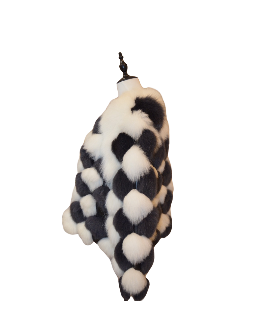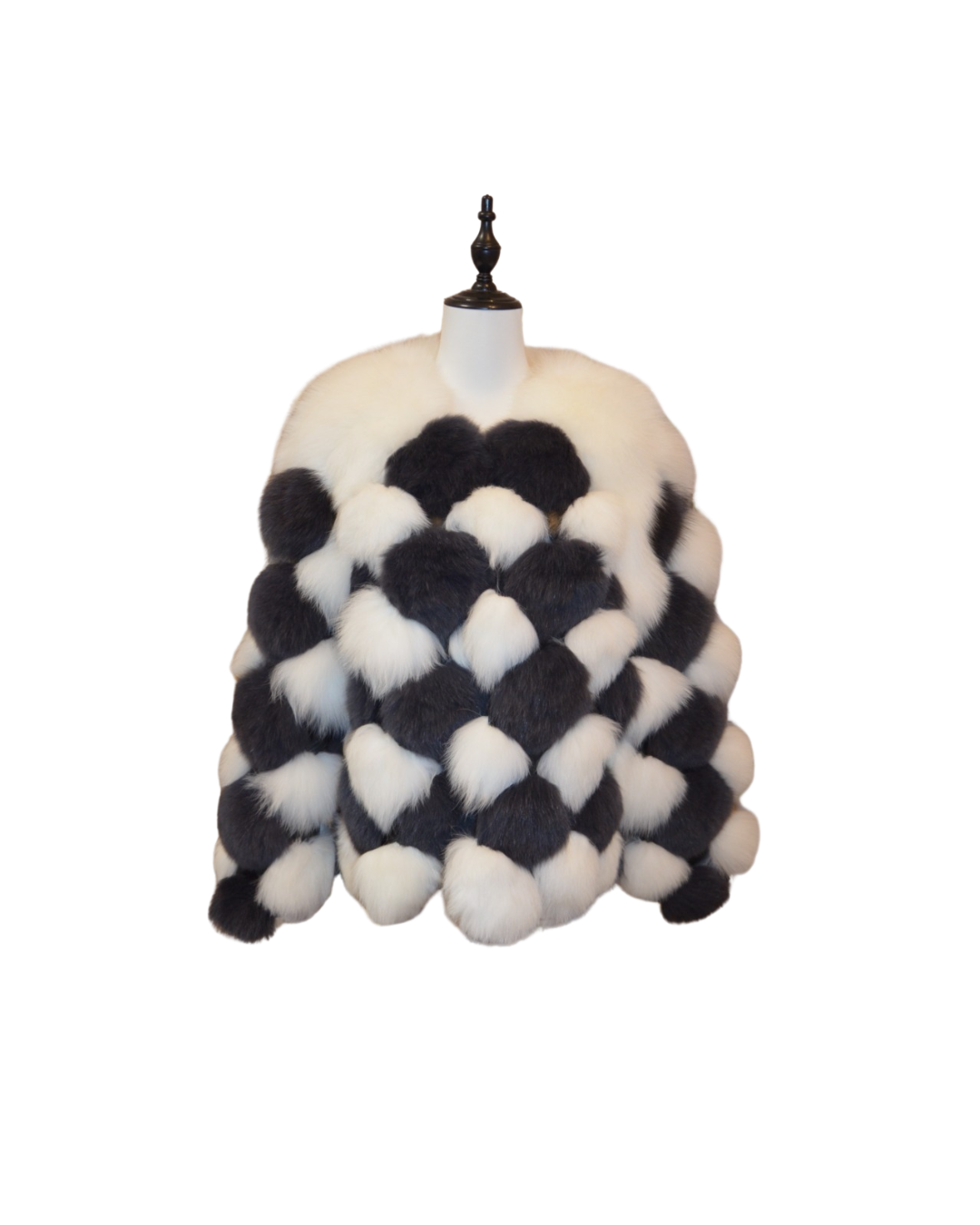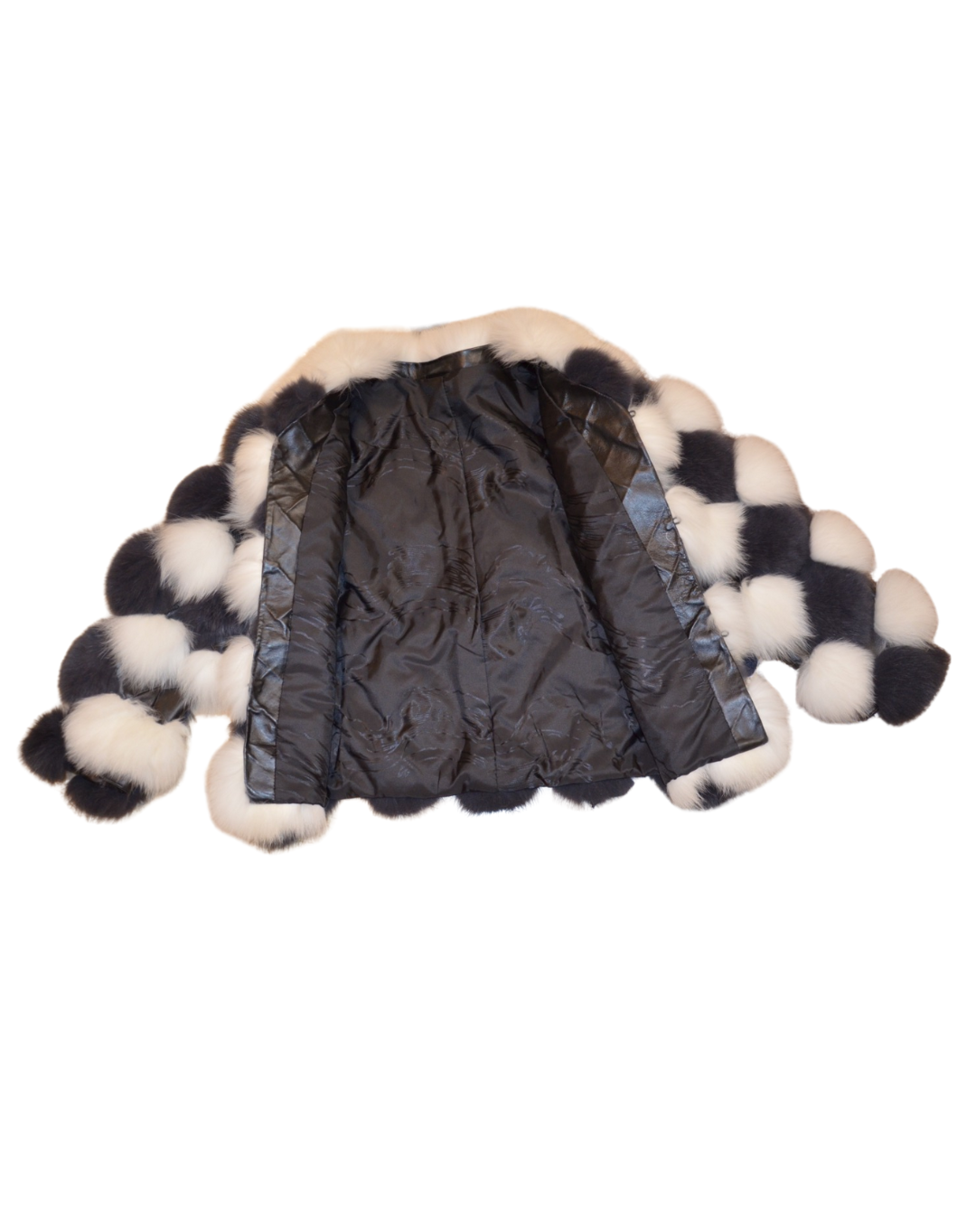 這款黑白相間的狐狸毛外套,以大膽的幾何圖案設計彰顯非凡品味。豐盈的質感為您帶來極致溫暖,同時展現優雅與自信。不論是參加高雅晚宴,還是漫步街頭,這件外套都能讓您成為眾人矚目的焦點。