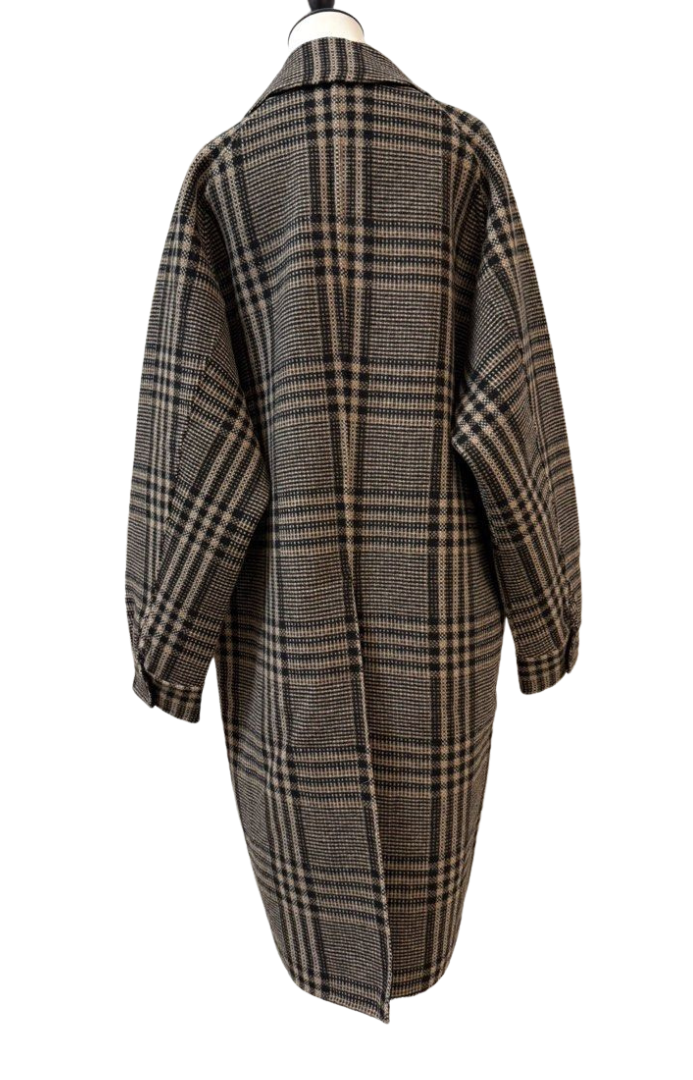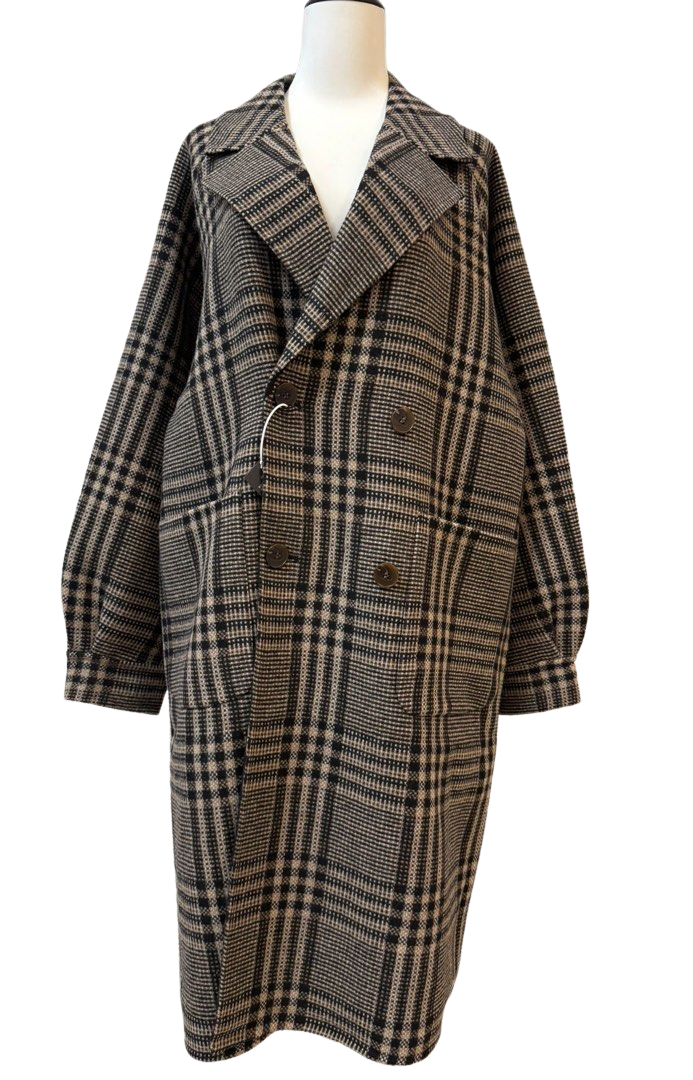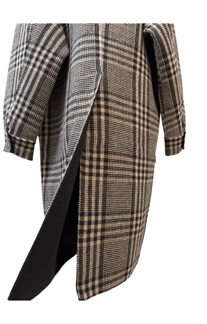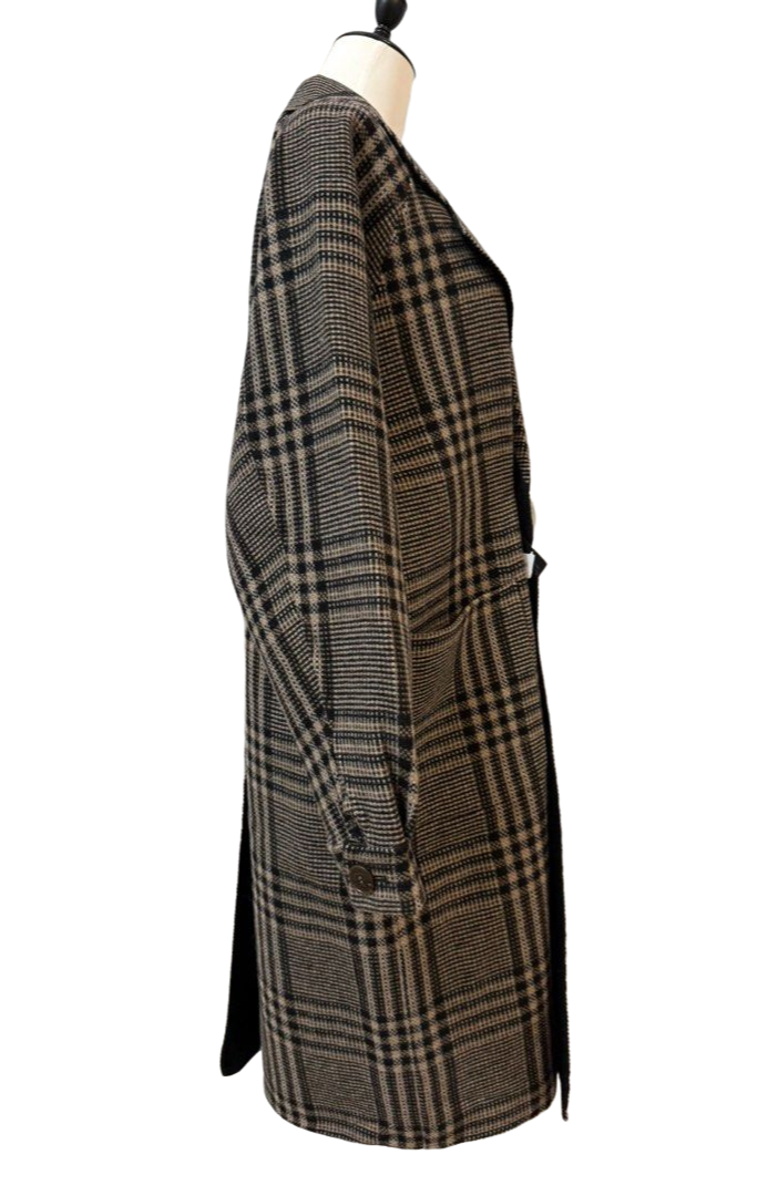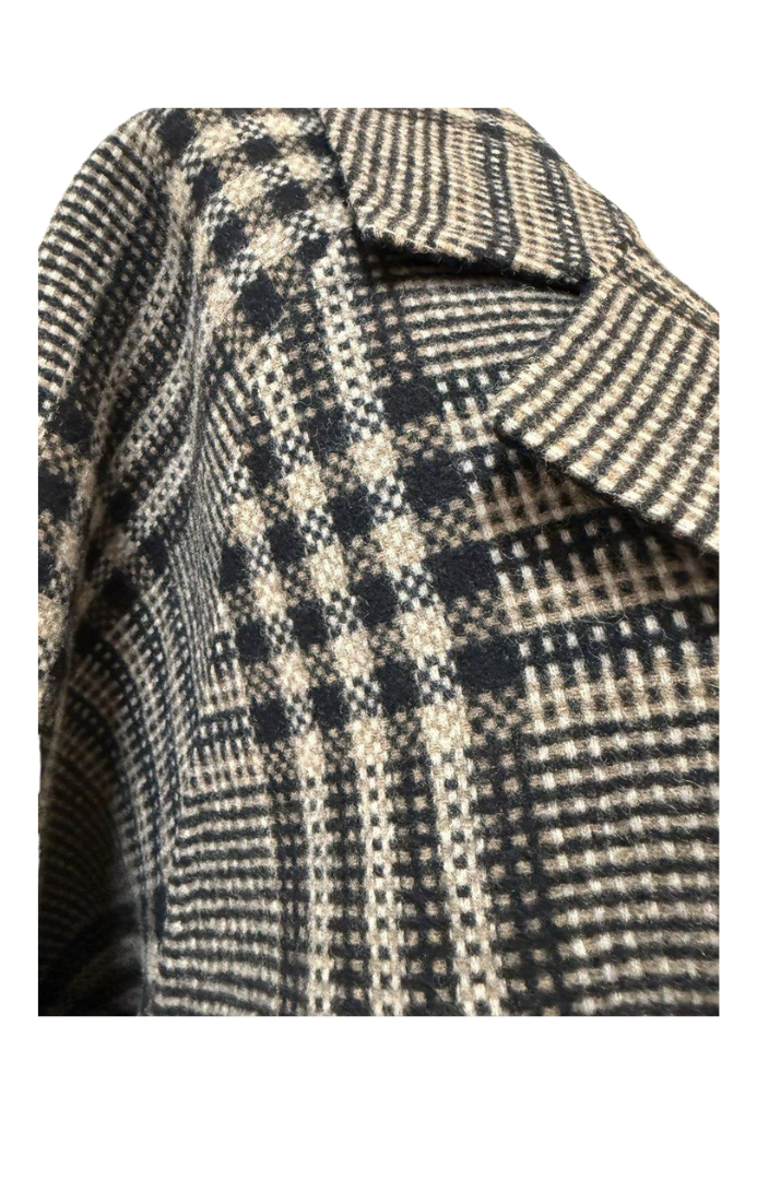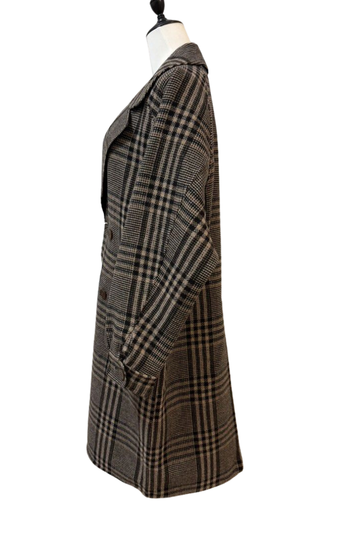 這款格紋大衣,採用100%綿羊毛匠心打造,經典的黑棕格紋圖案復古又時髦。翻領設計利落大氣,雙排扣與寬鬆廓形營造休閒隨性的風格,長款版型兼具保暖與修飾身型的效果。綿羊毛材質質感細膩,保暖性出眾,內裏的細節做工精緻,無論是日常出街還是通勤辦公,都能輕鬆駕馭,是秋冬季節提升穿搭質感的實力單品